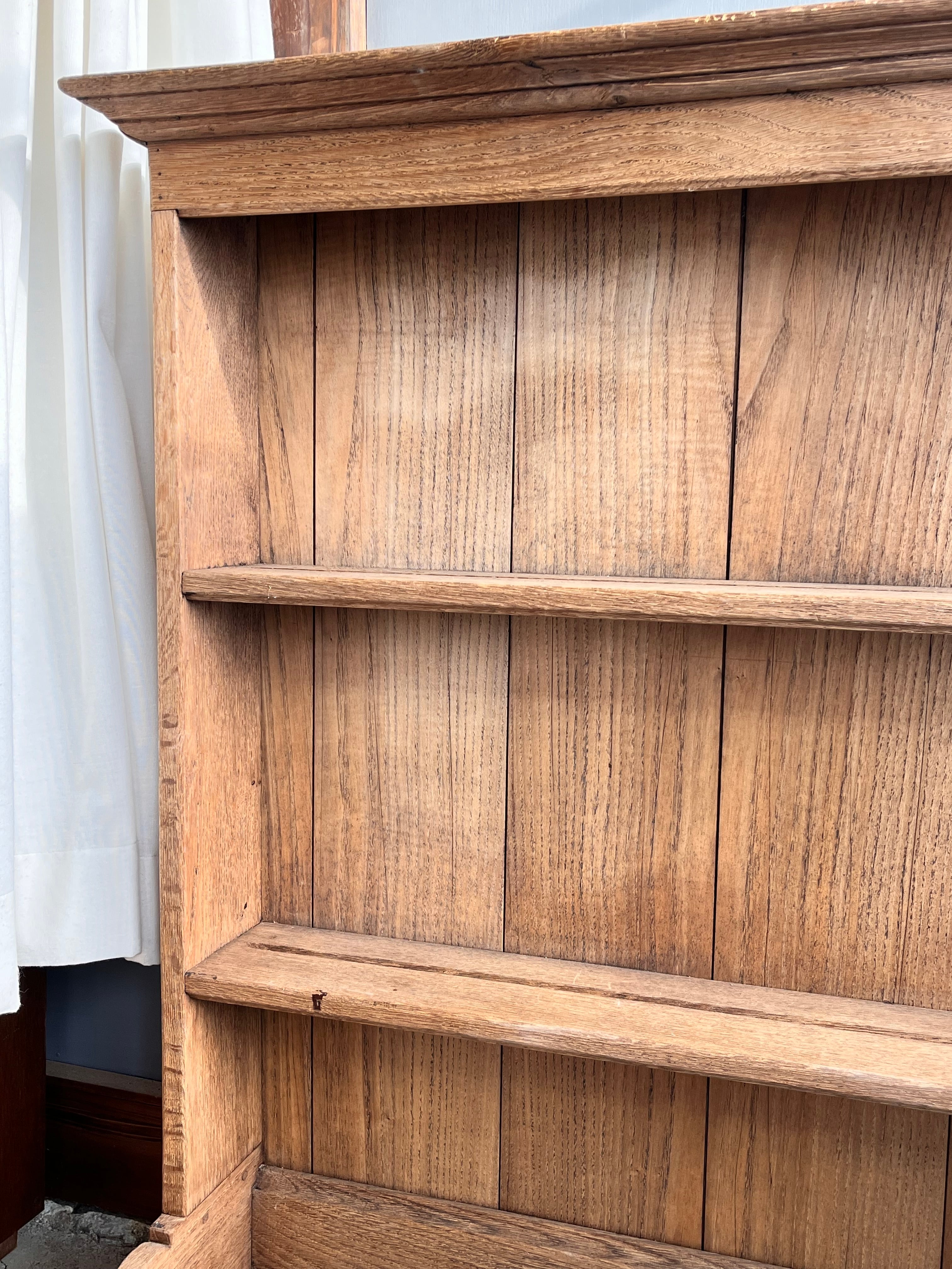 棚板部分に溝があり、お皿を飾れるようになっています。食器や古書などを飾ってみては。剥離済み。