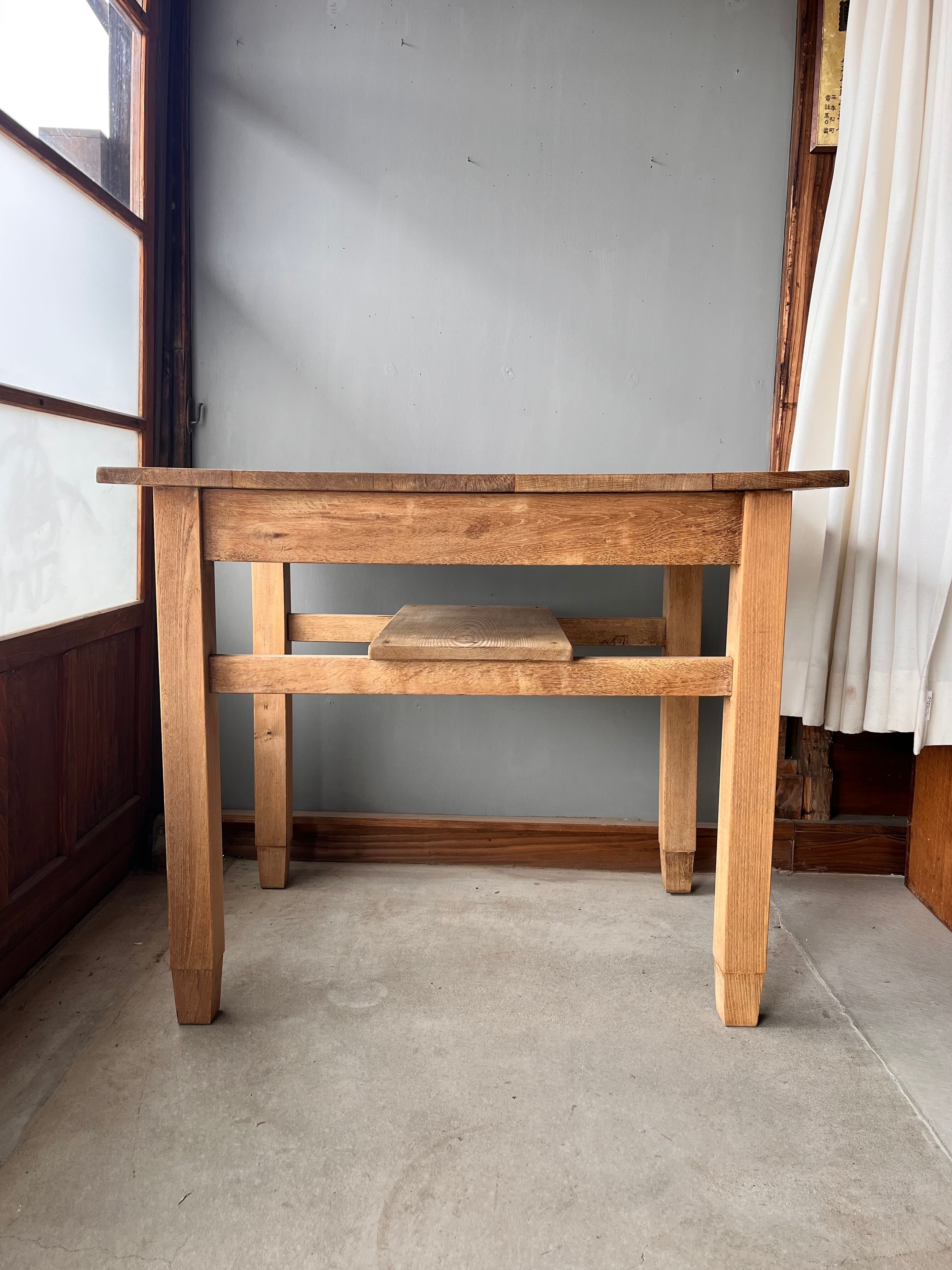 下部を支える貫がテーブルの横についておりますので、椅子が入りません。椅子をご使用の際は最初の画像の様に縦向きにしてお使い下さい。剥離済み。