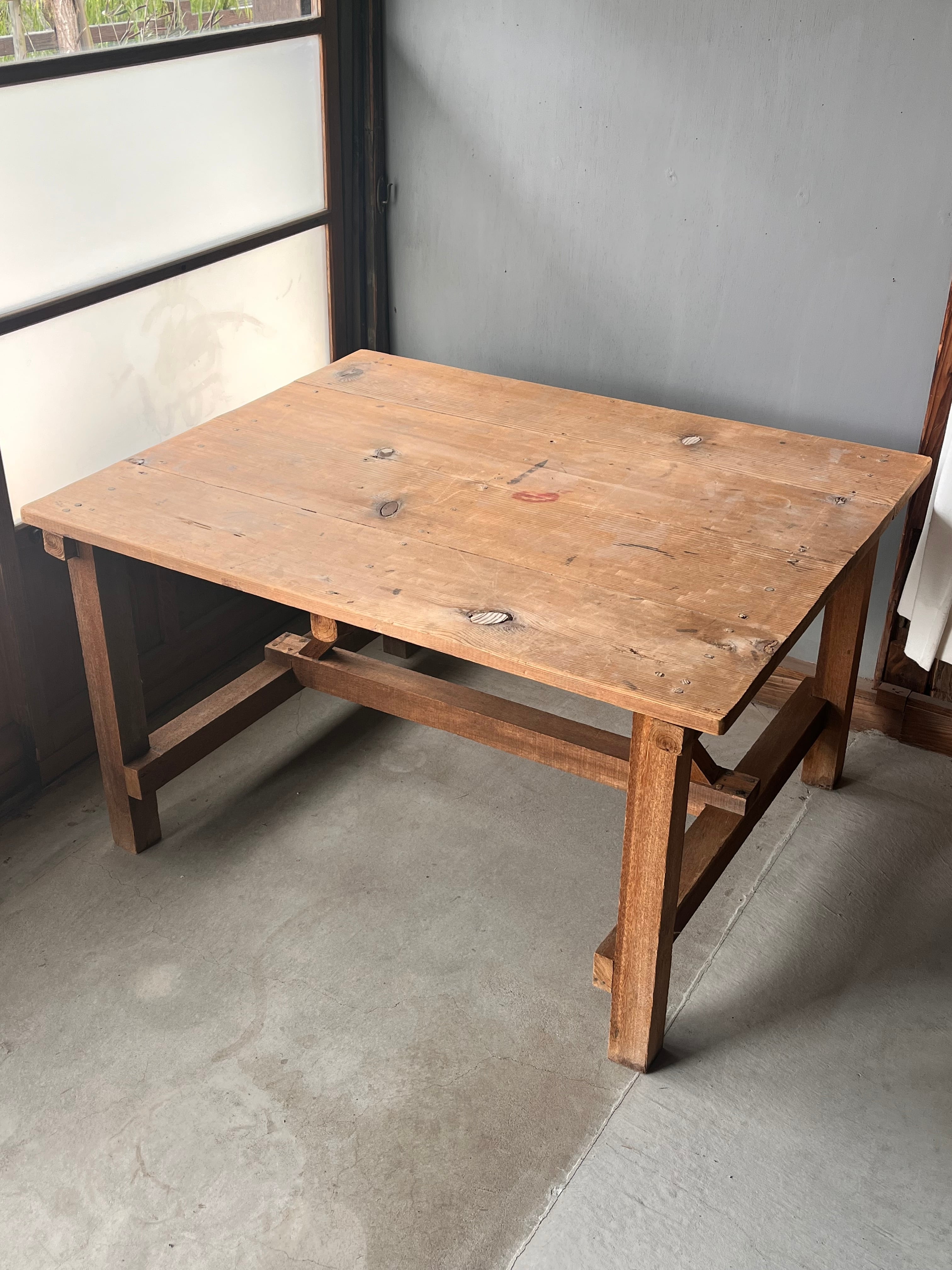 少し低めの作業台。アトリエなどで活躍してくれそうなしっかりとした台です。