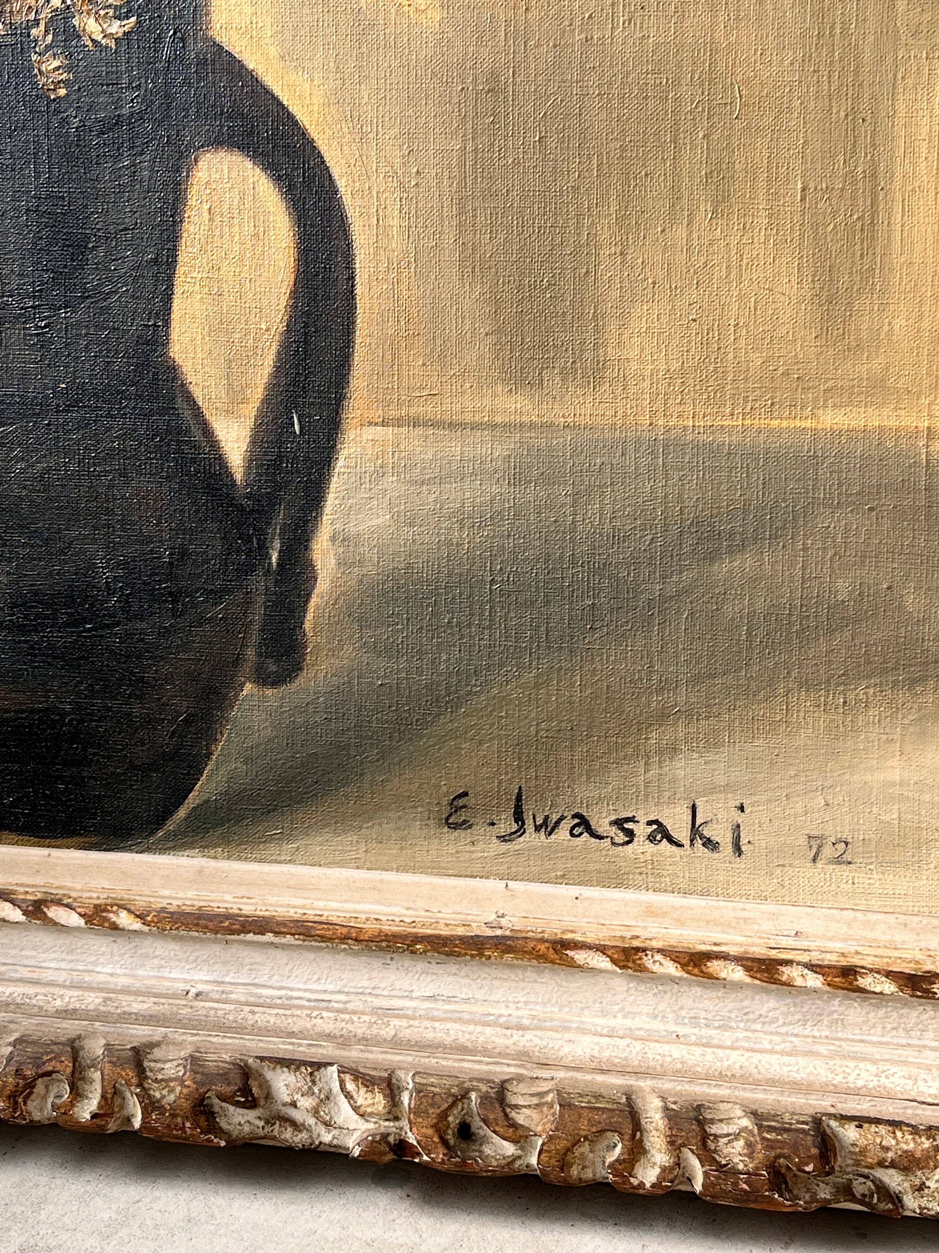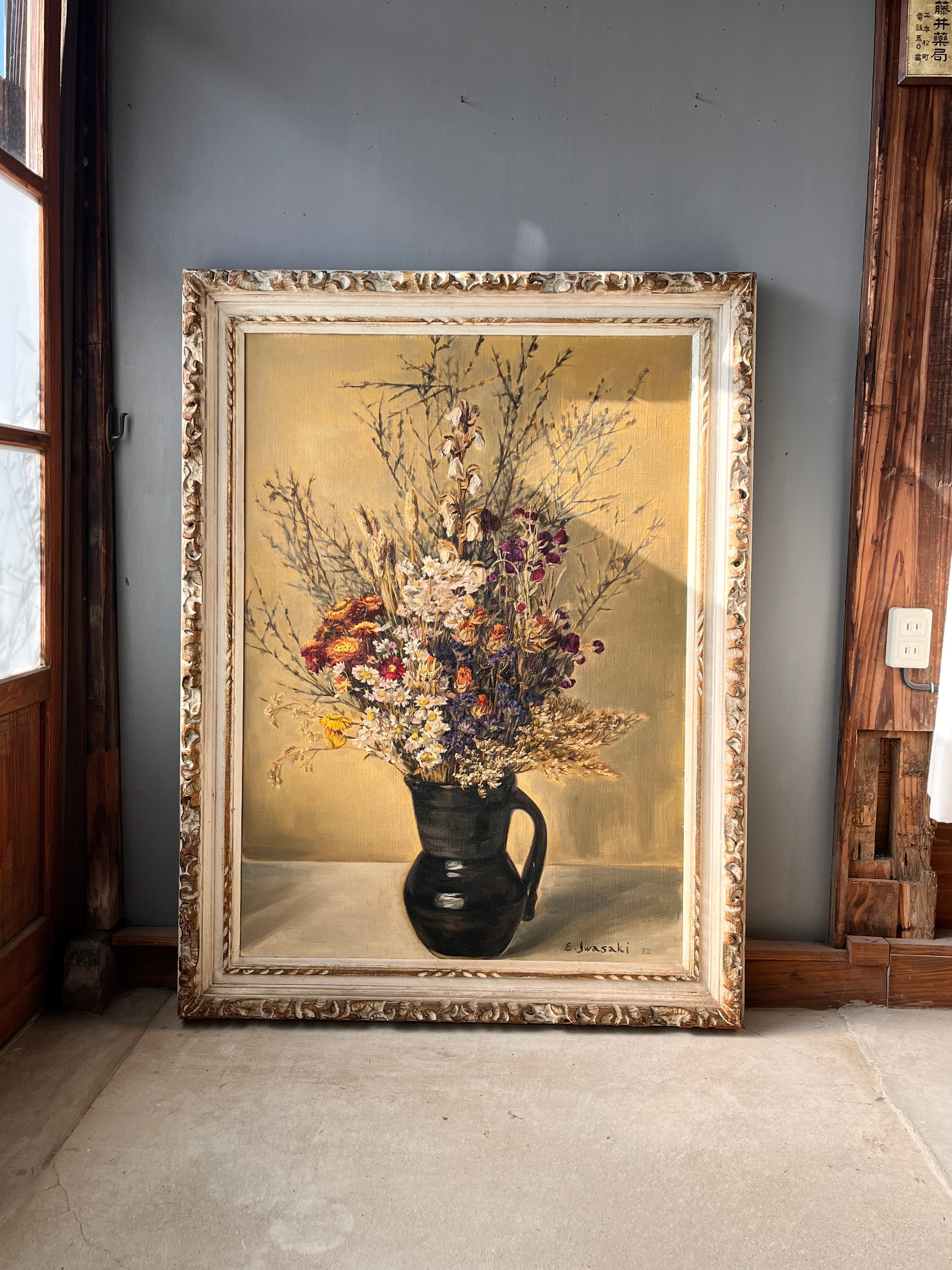 落ち着いた色彩の中にドライフラワーのような花々の生命力を感じます。