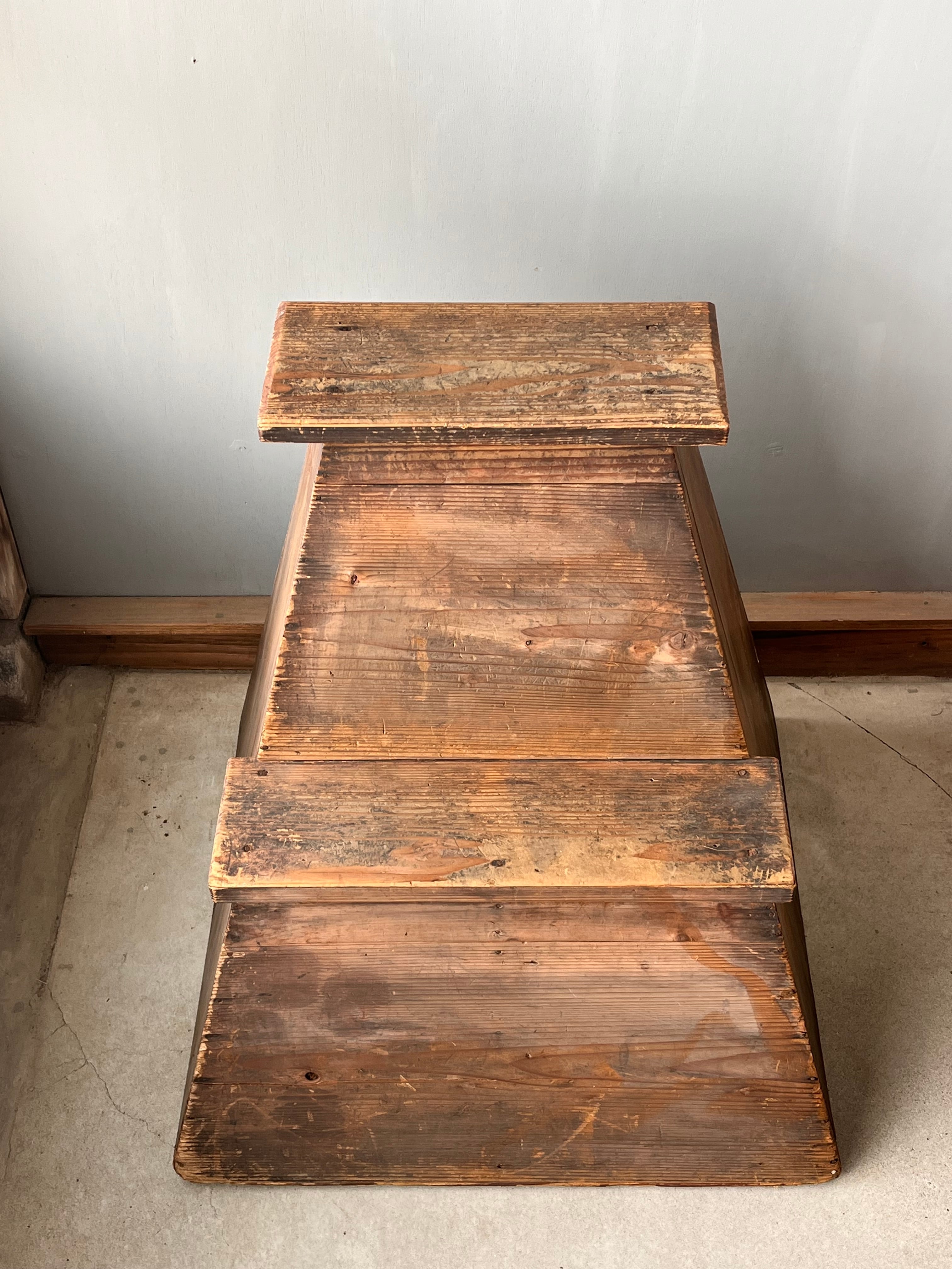 ステップに物を置いて、飾り台の様にしても素敵です。最後の写真にありますように少しだけ虫食い跡がございます。