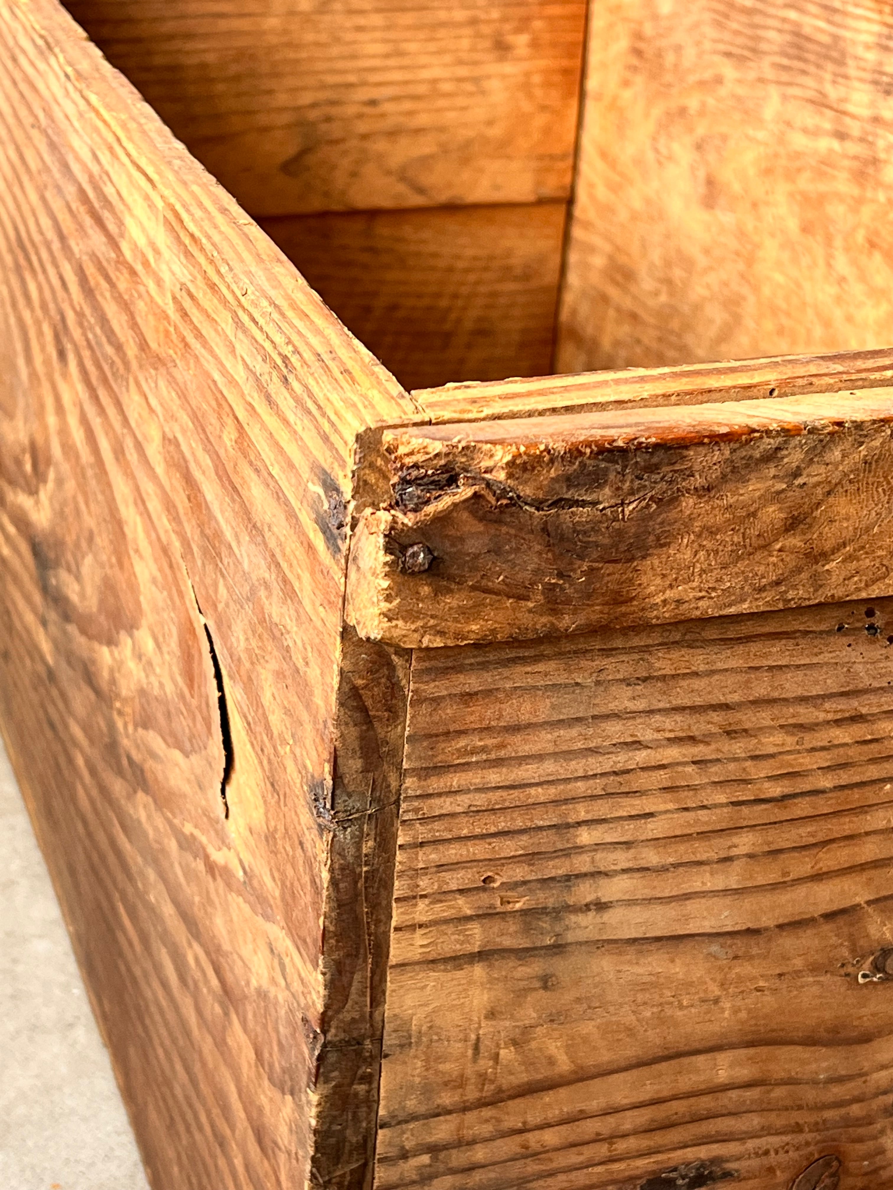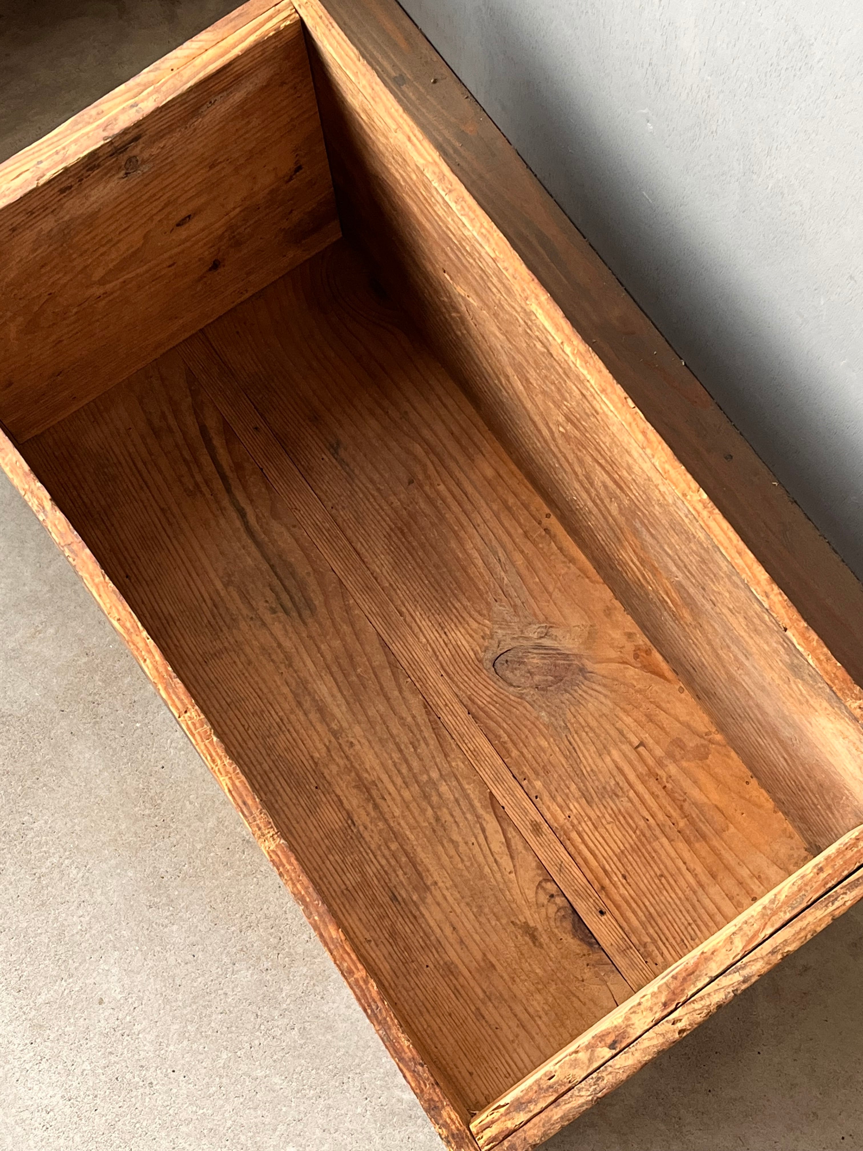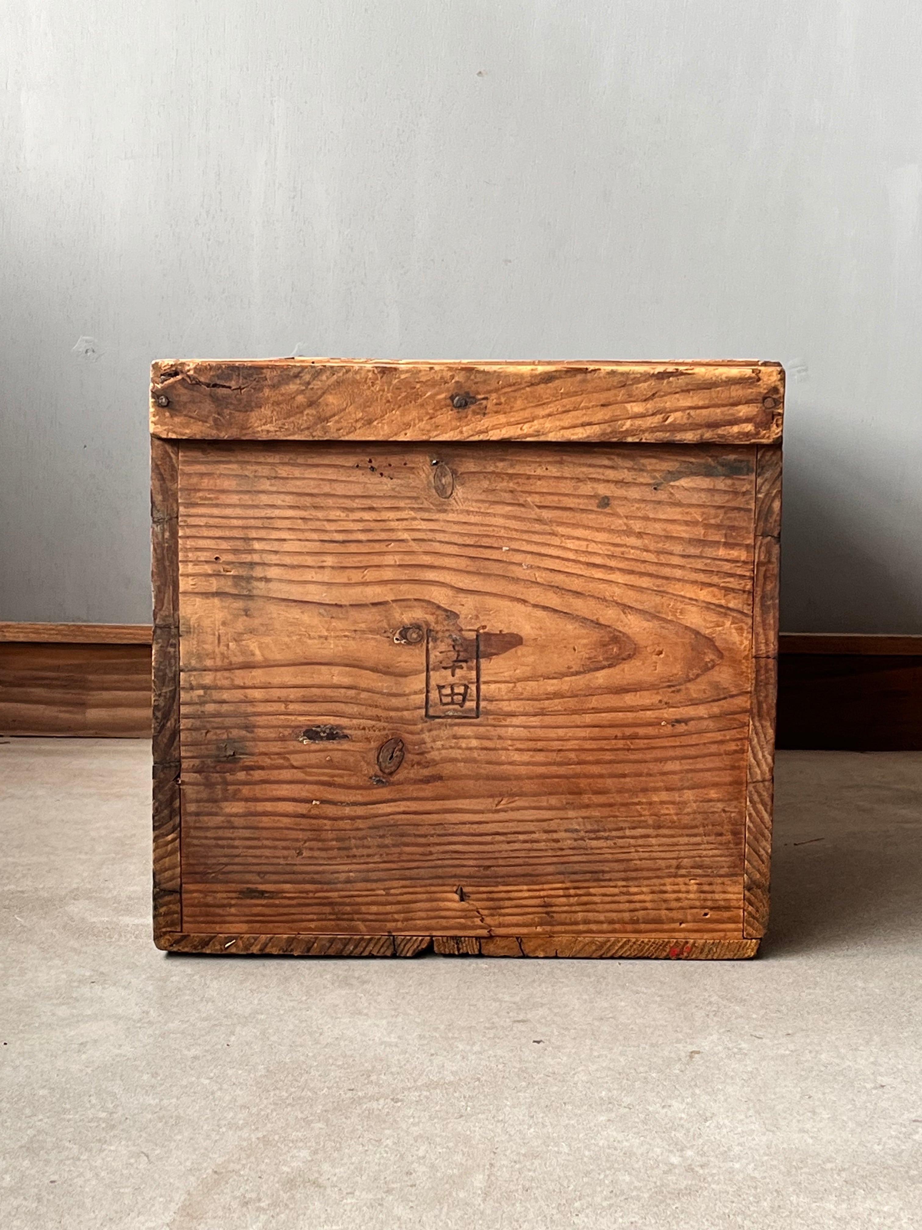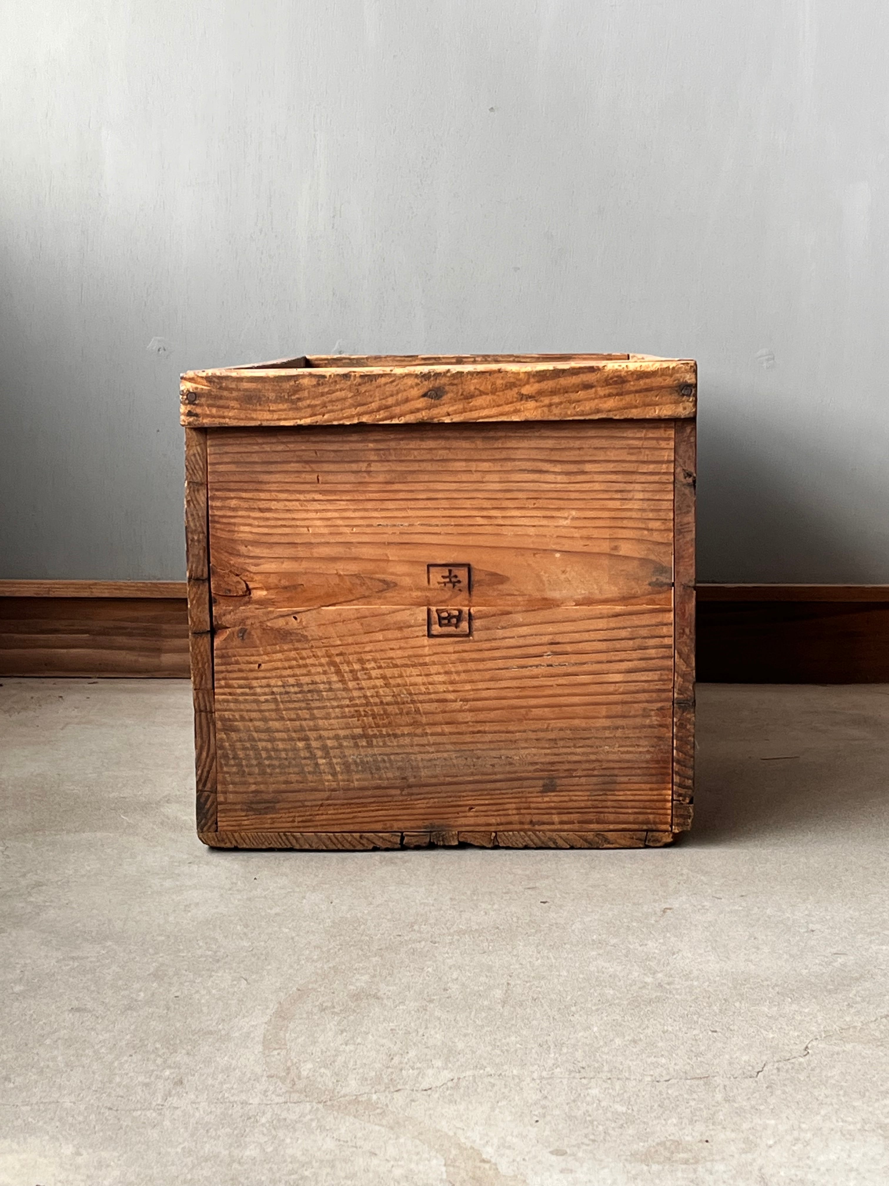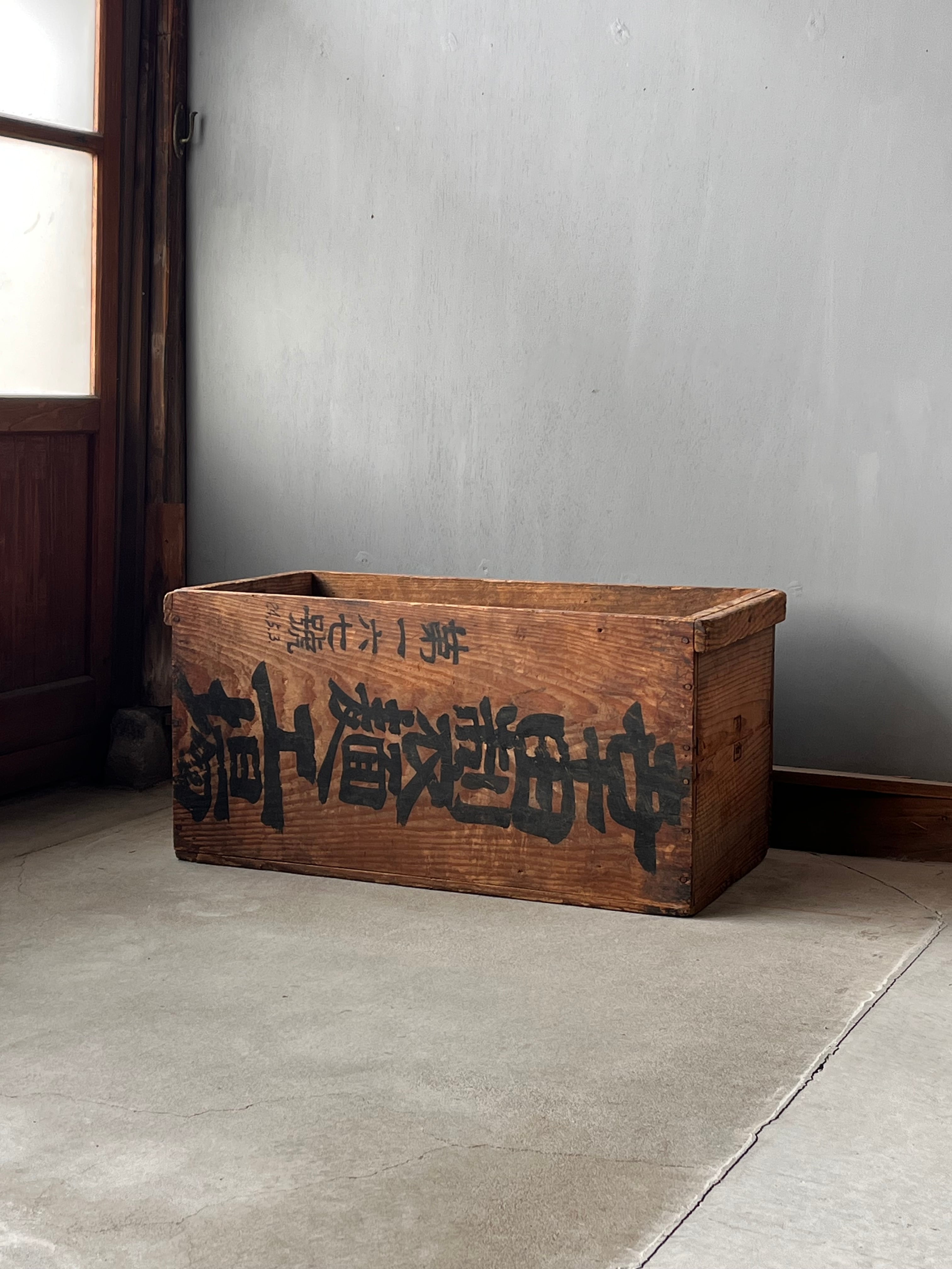 製麺所で使われていた木箱。りんご箱よりも重厚感があります。