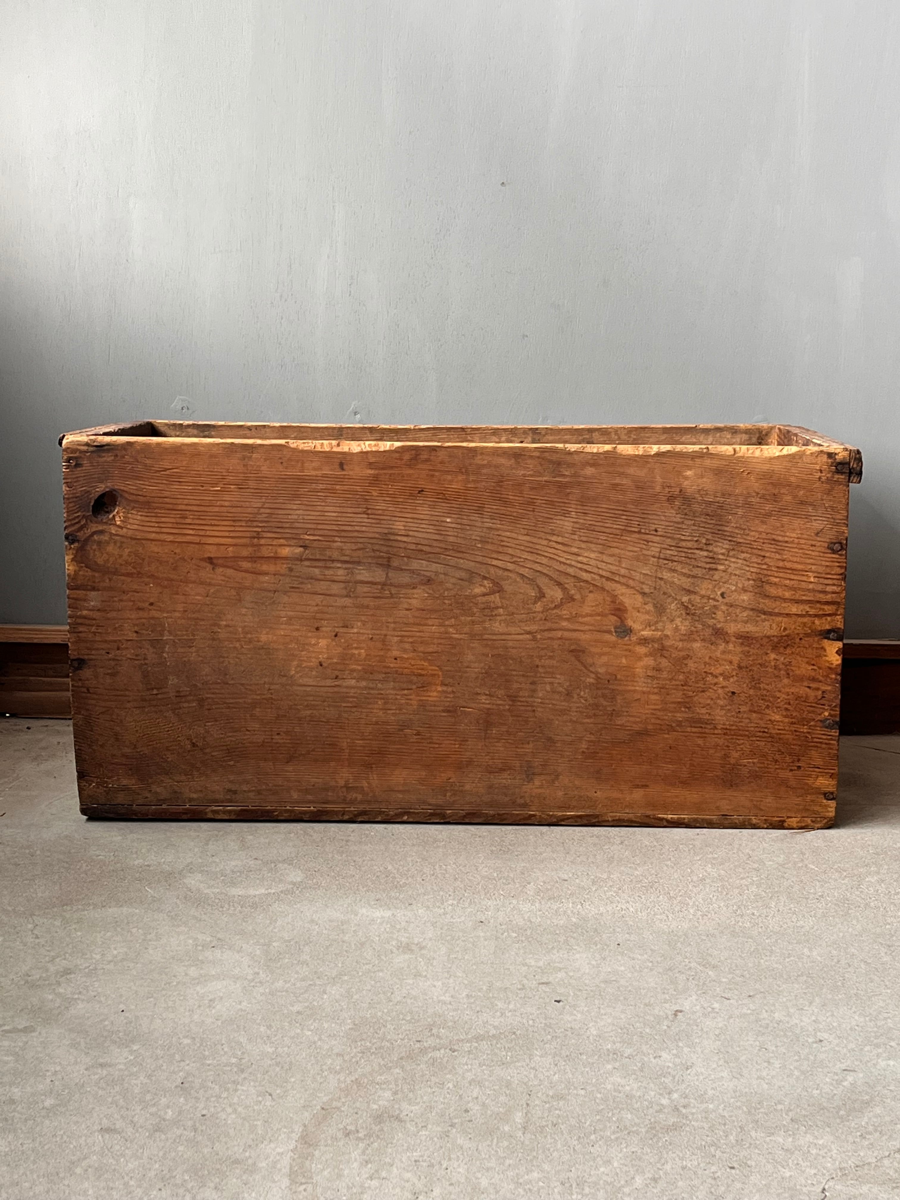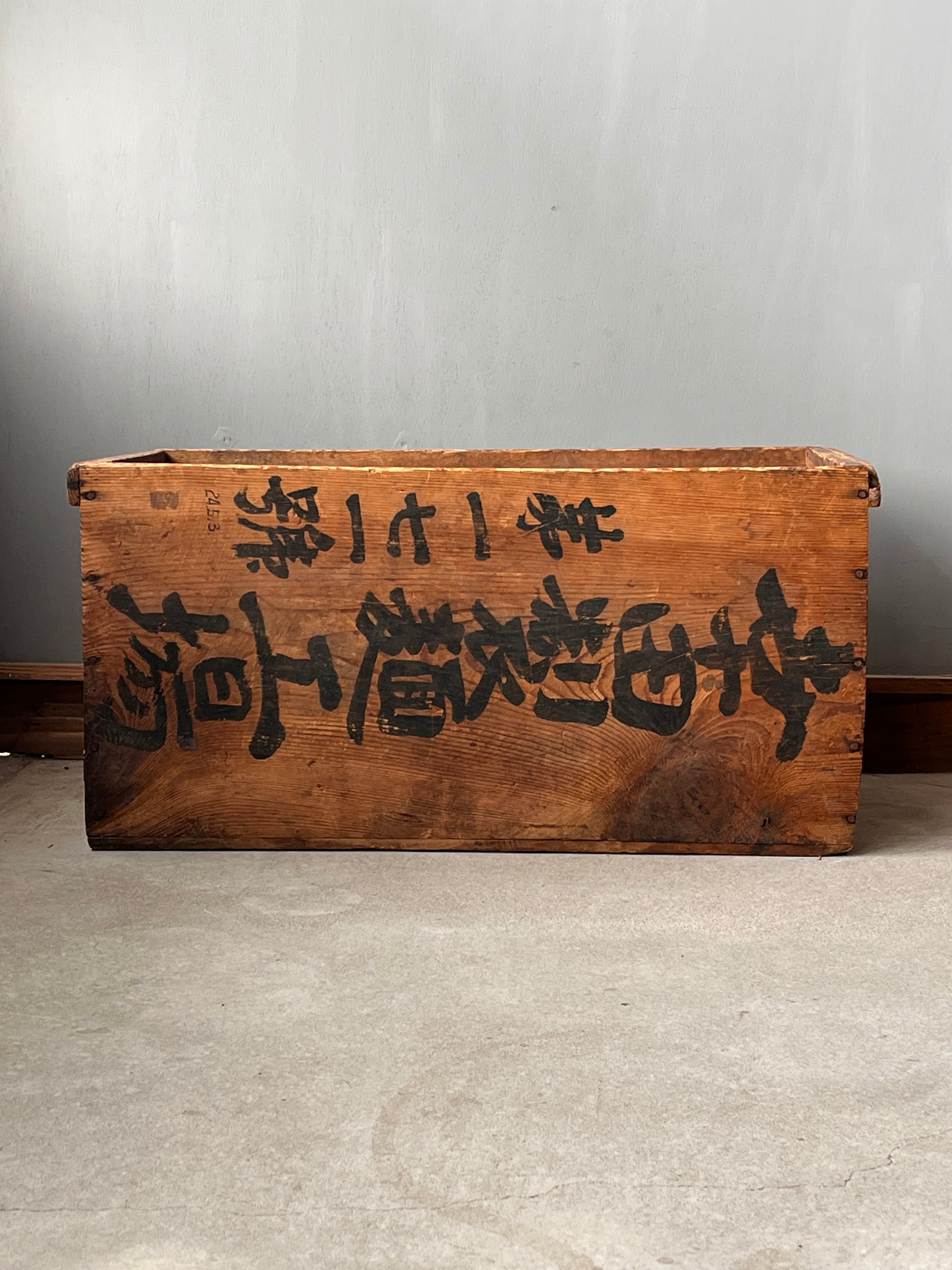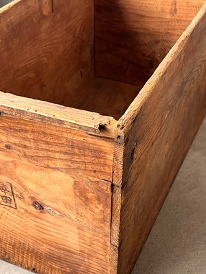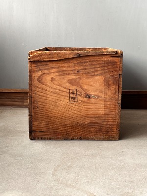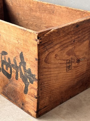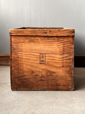 製麺所で使われていた木箱。りんご箱よりも重厚感があります。