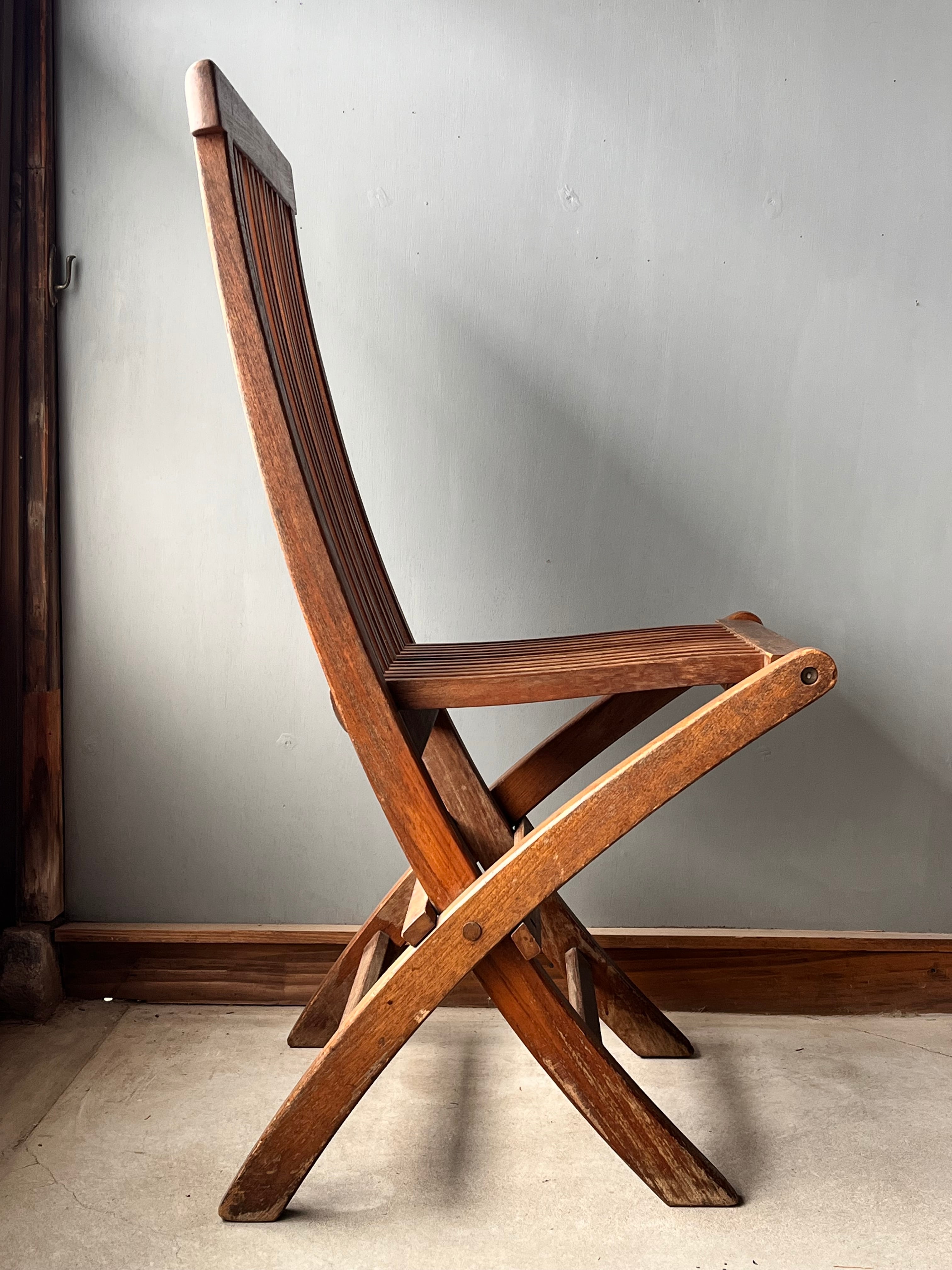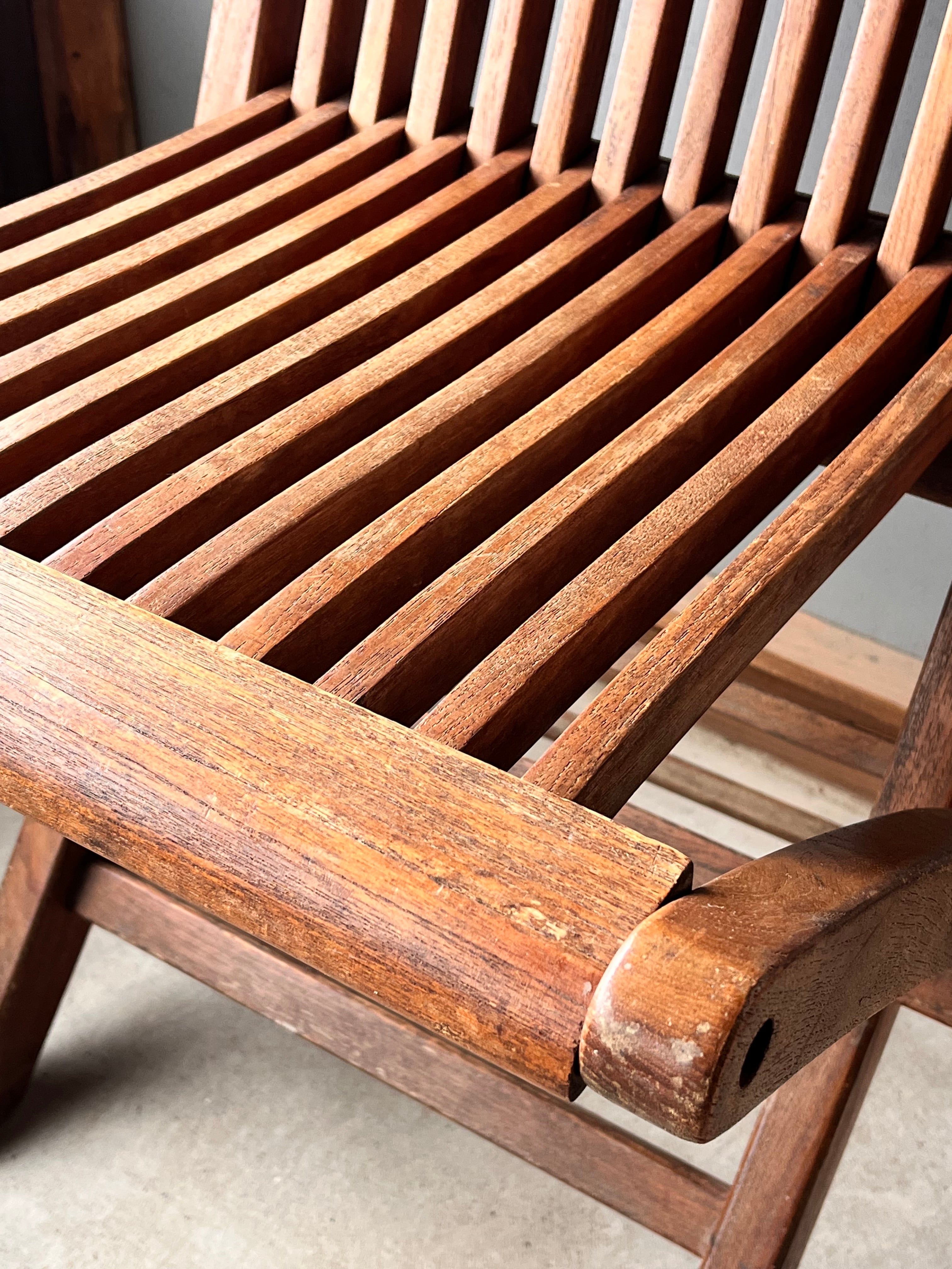 チーク材の折りたたみ式チェア。