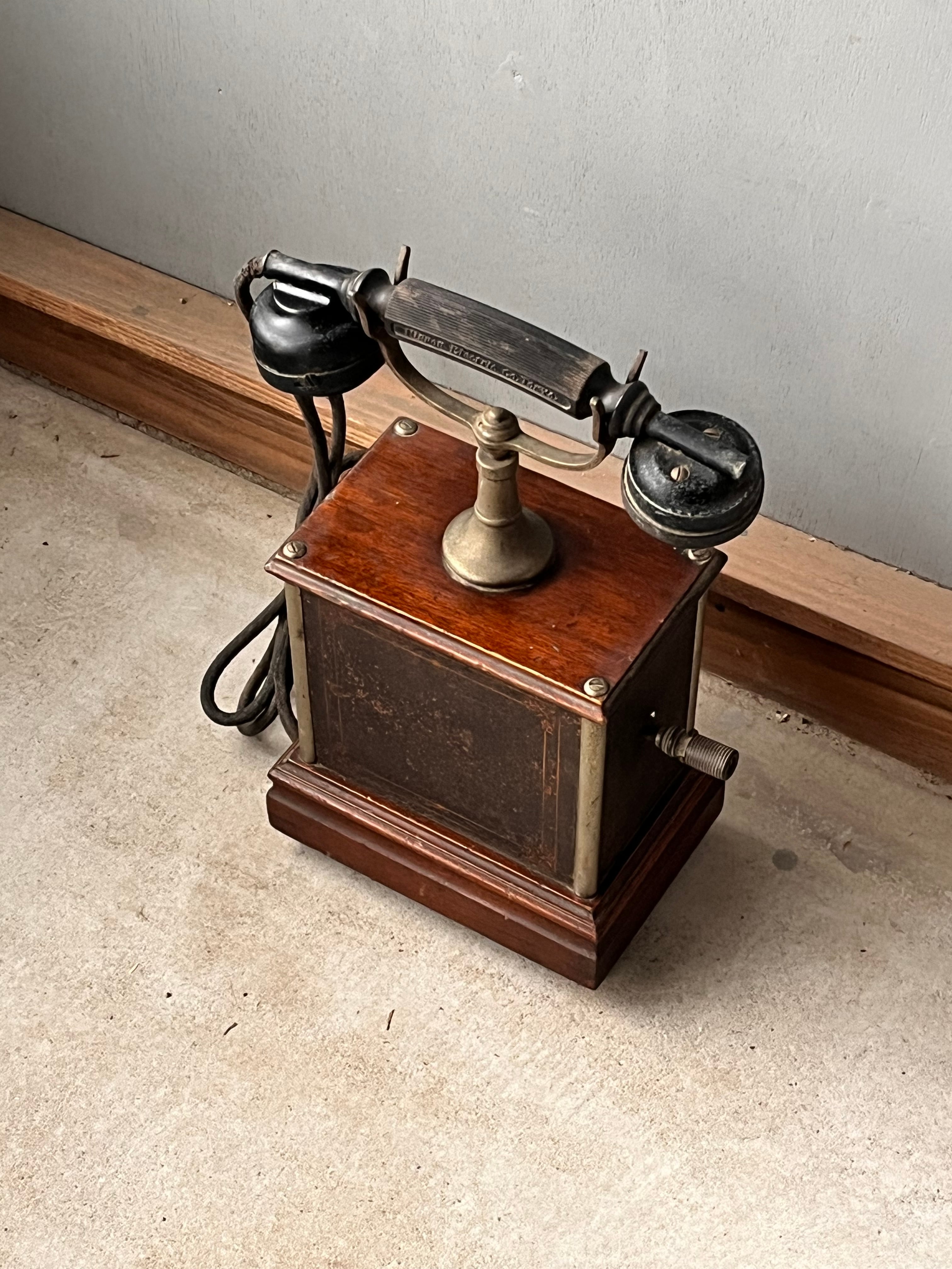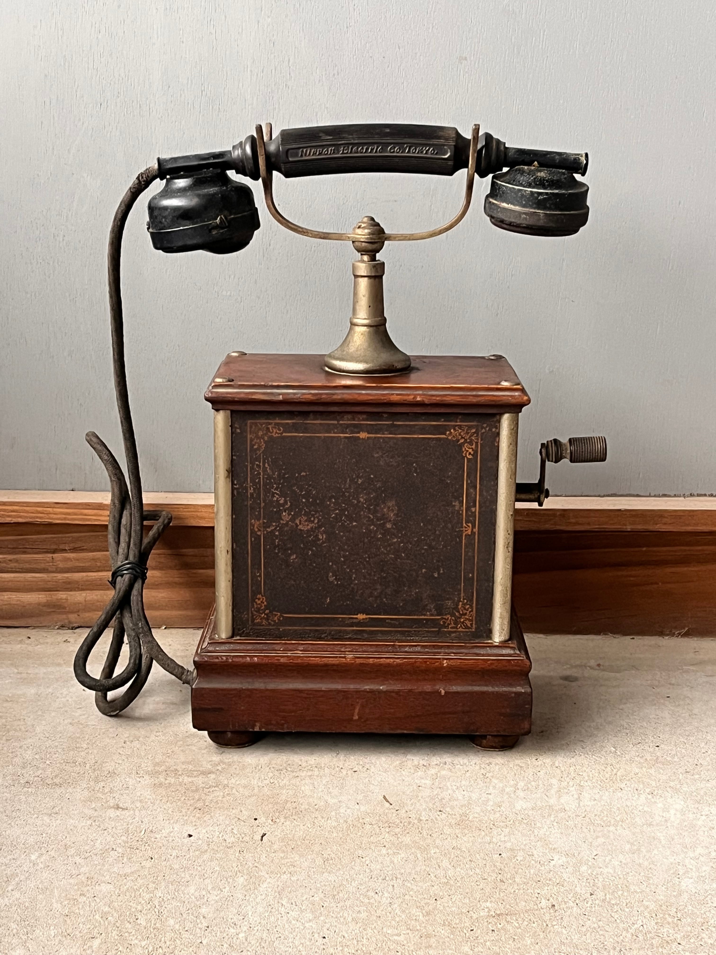 大正時代の電話機。ヨーロッパ文化の影響を受け、洋風なデザインになっています。