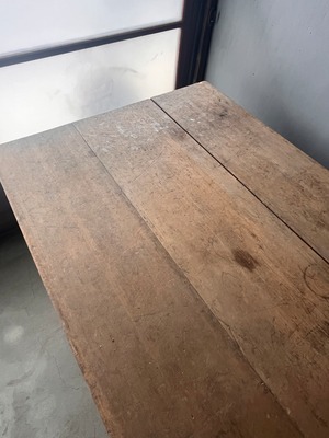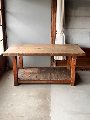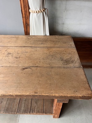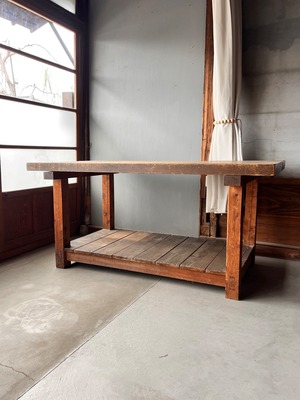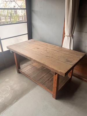 店舗什器やダイニングテーブルとしておすすめ。厚い天板で白いペンキが少しかかった風合いも抜群です。