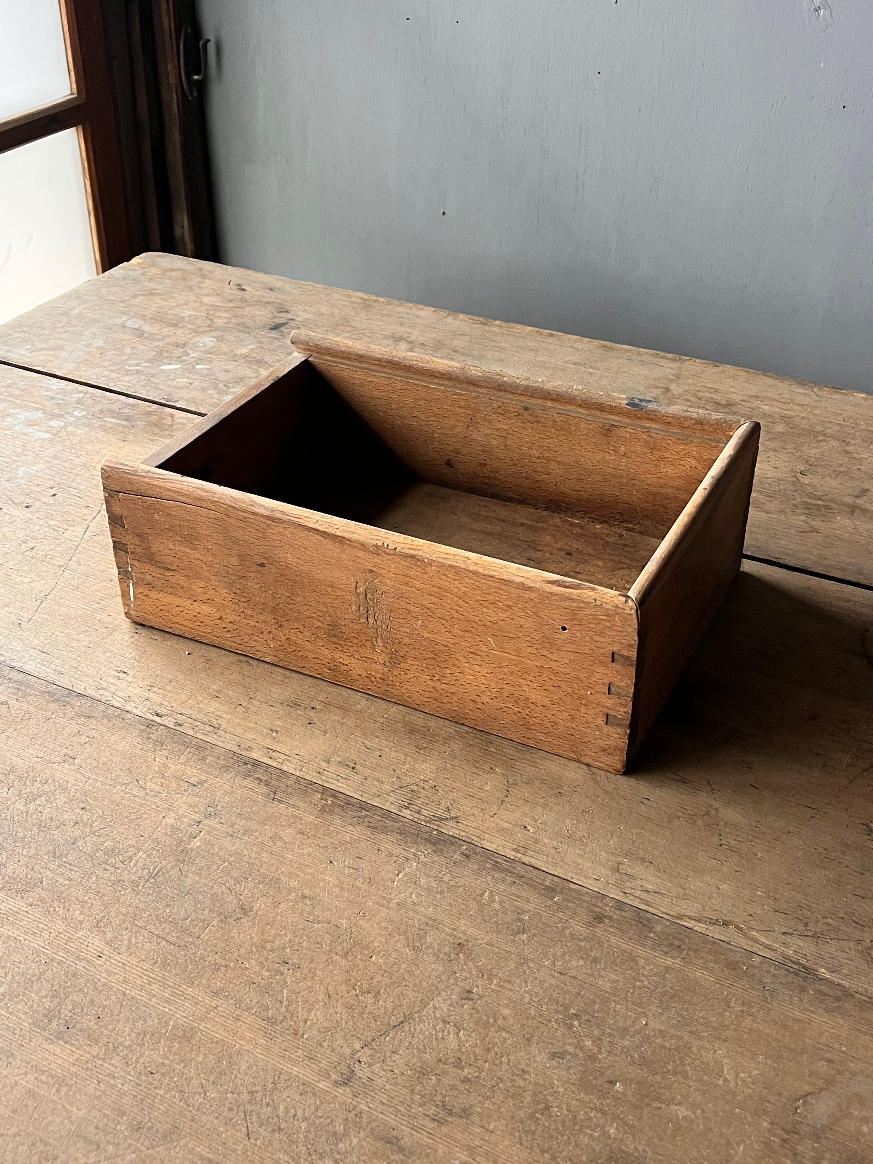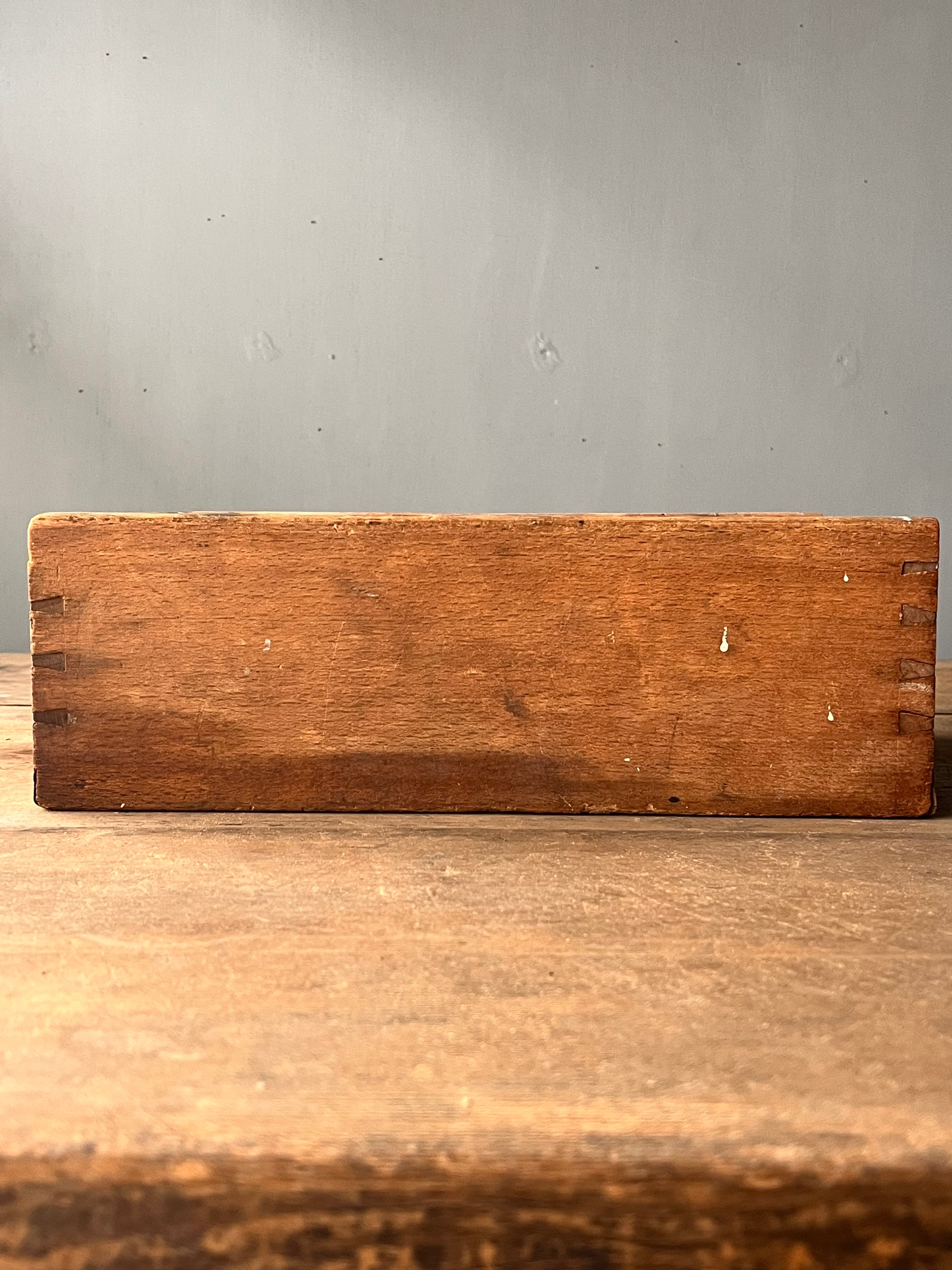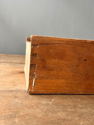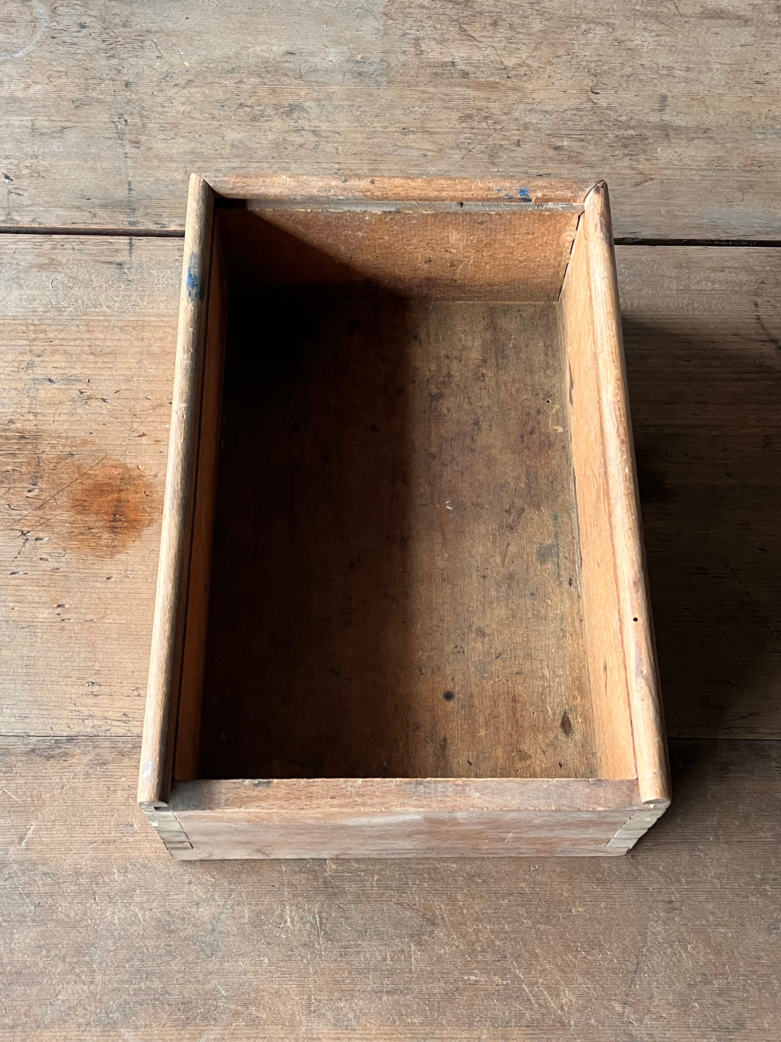 フランスで出会った木箱。蟻組接ぎの木材の組み合わせで作られています。
