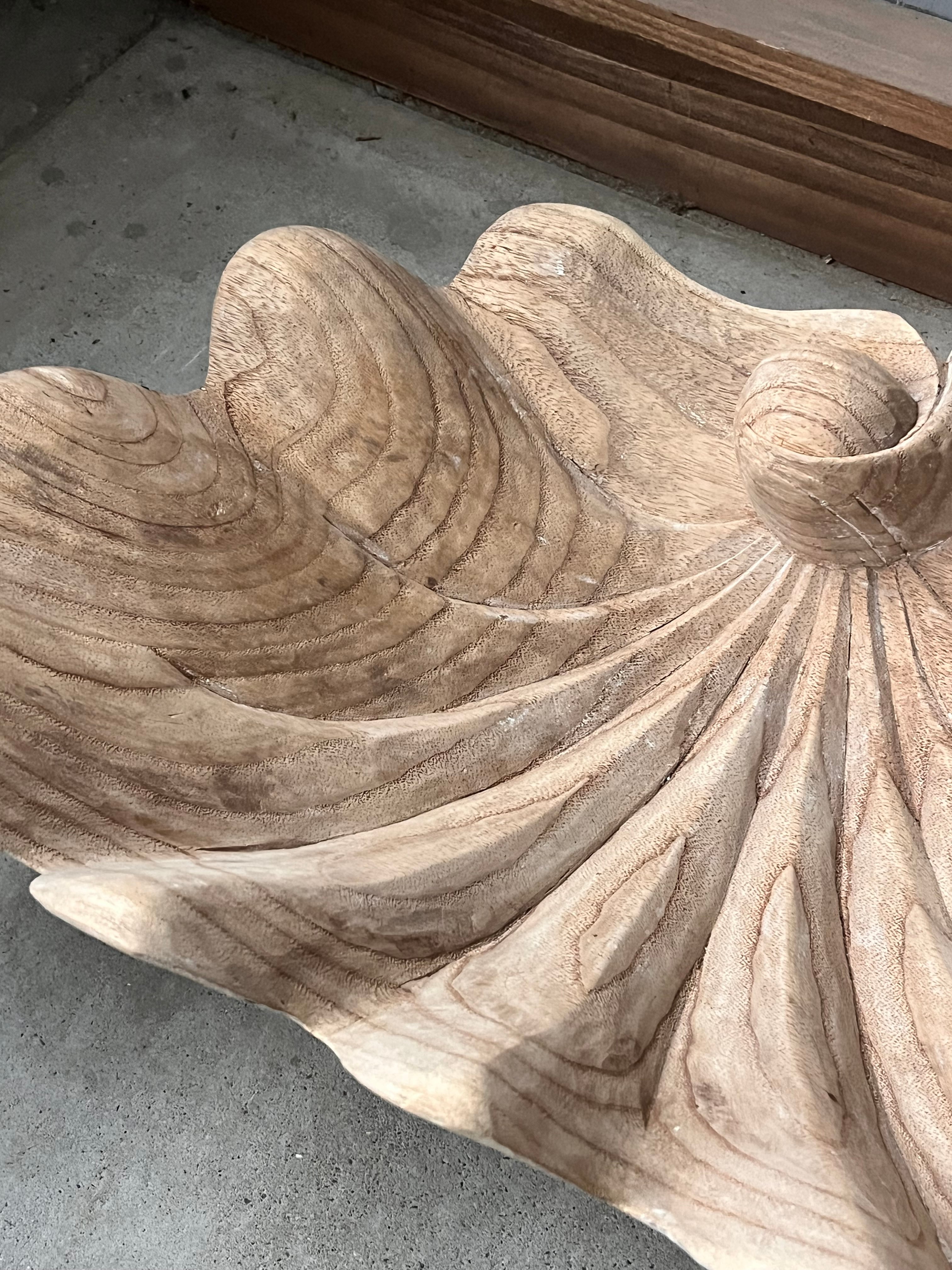 木製の貝殻デザインの器。店舗で商品などを入れるディスプレイにいかがでしょうか。