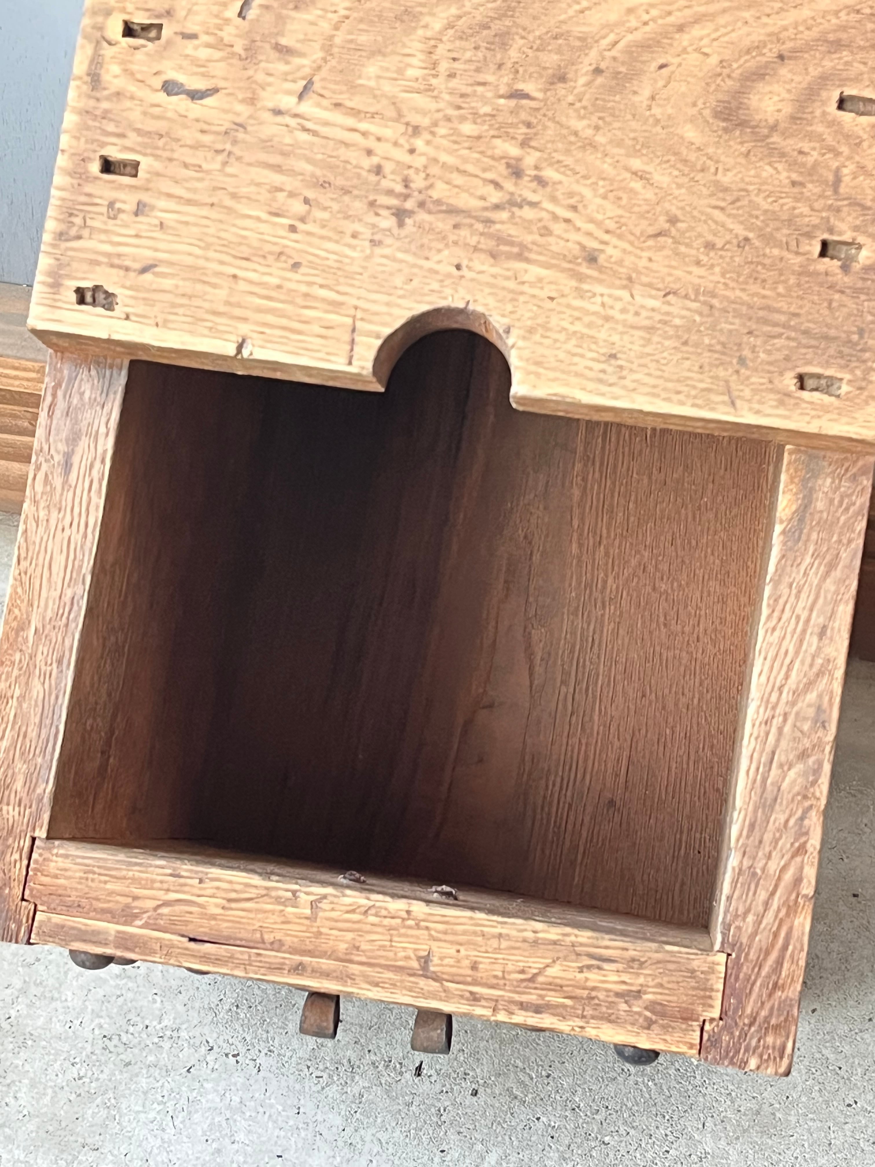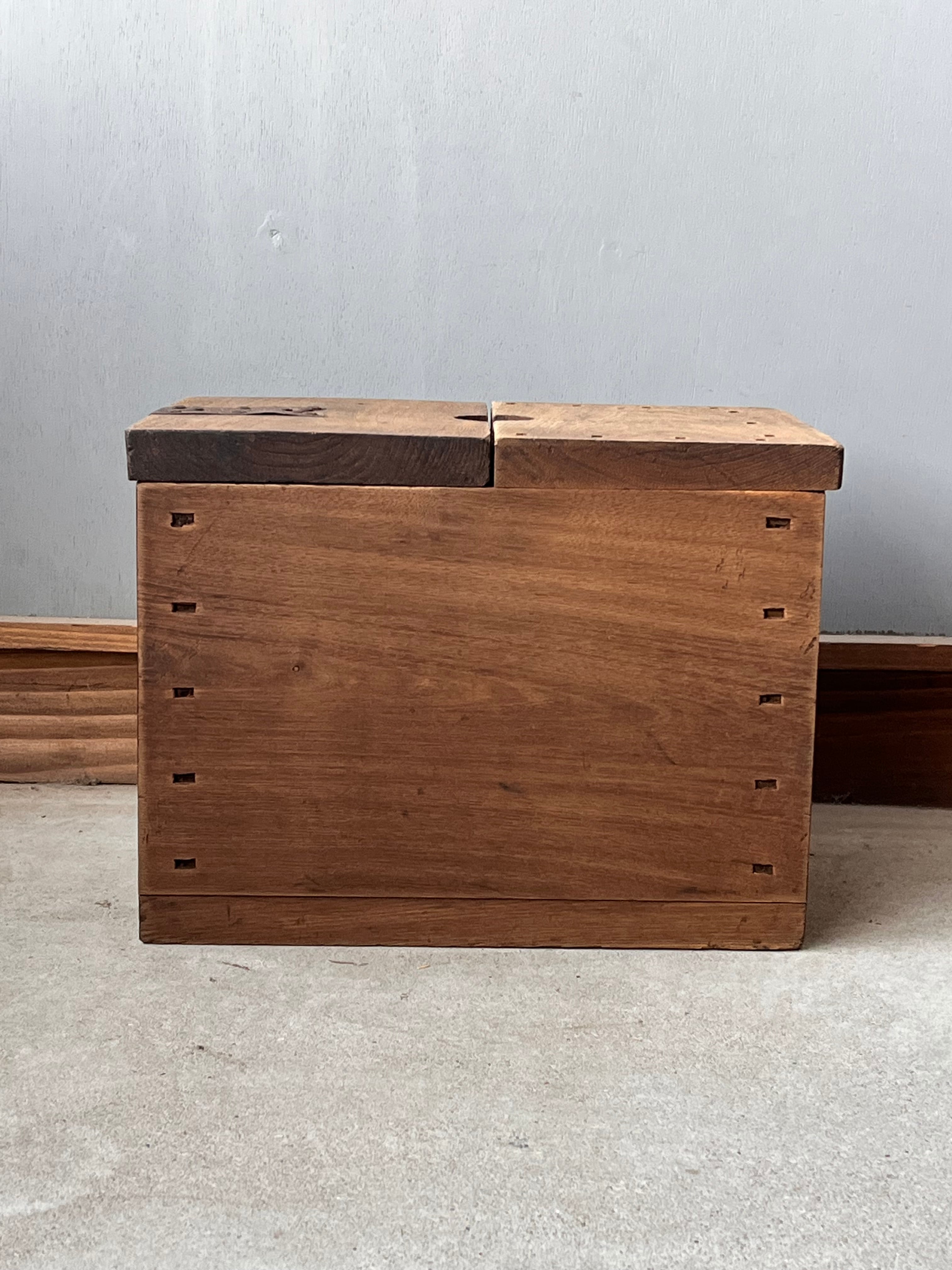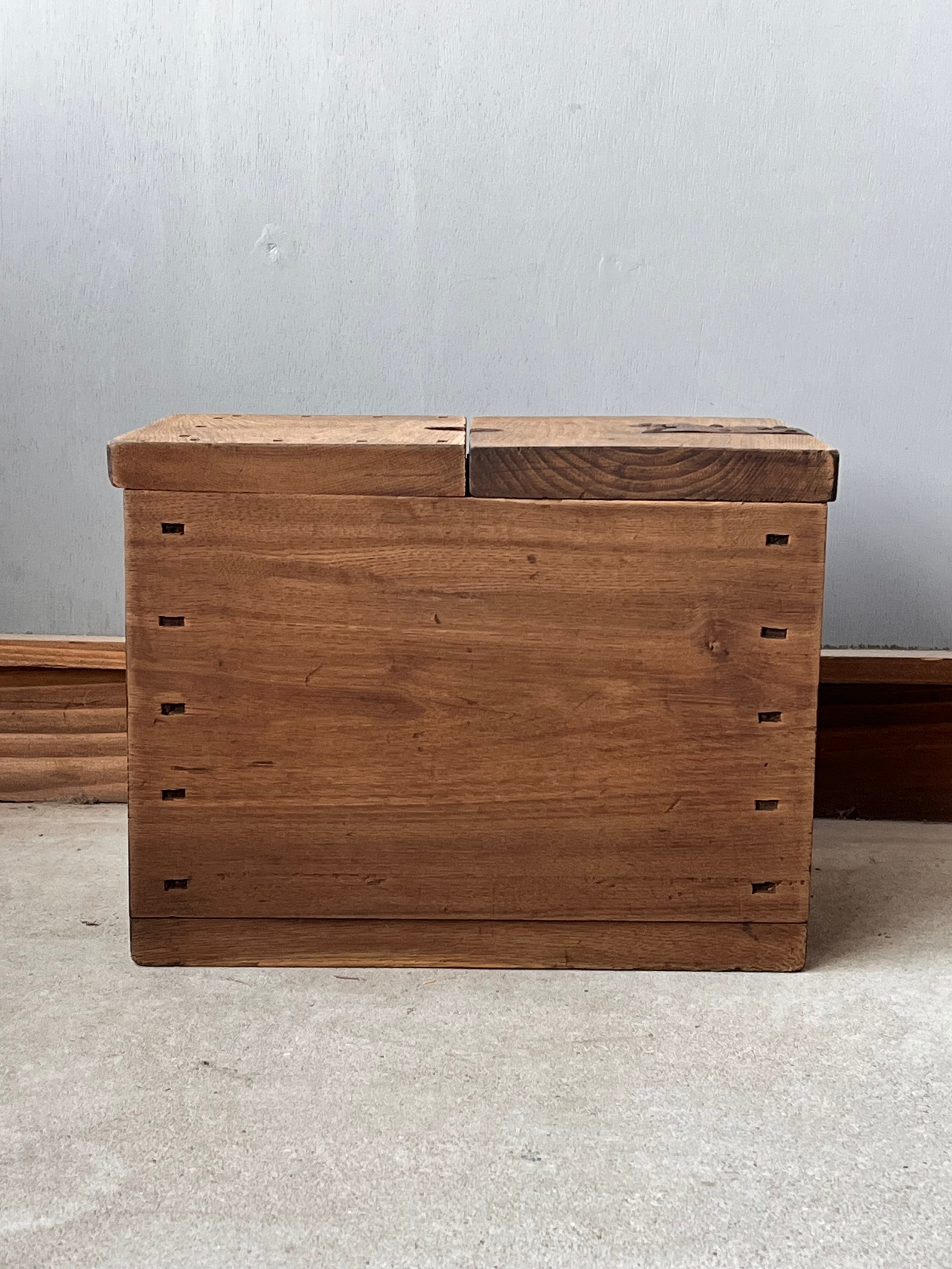 欅材使用。江戸〜明治頃、銭箱として使われていました。片側は外れますので収納に。