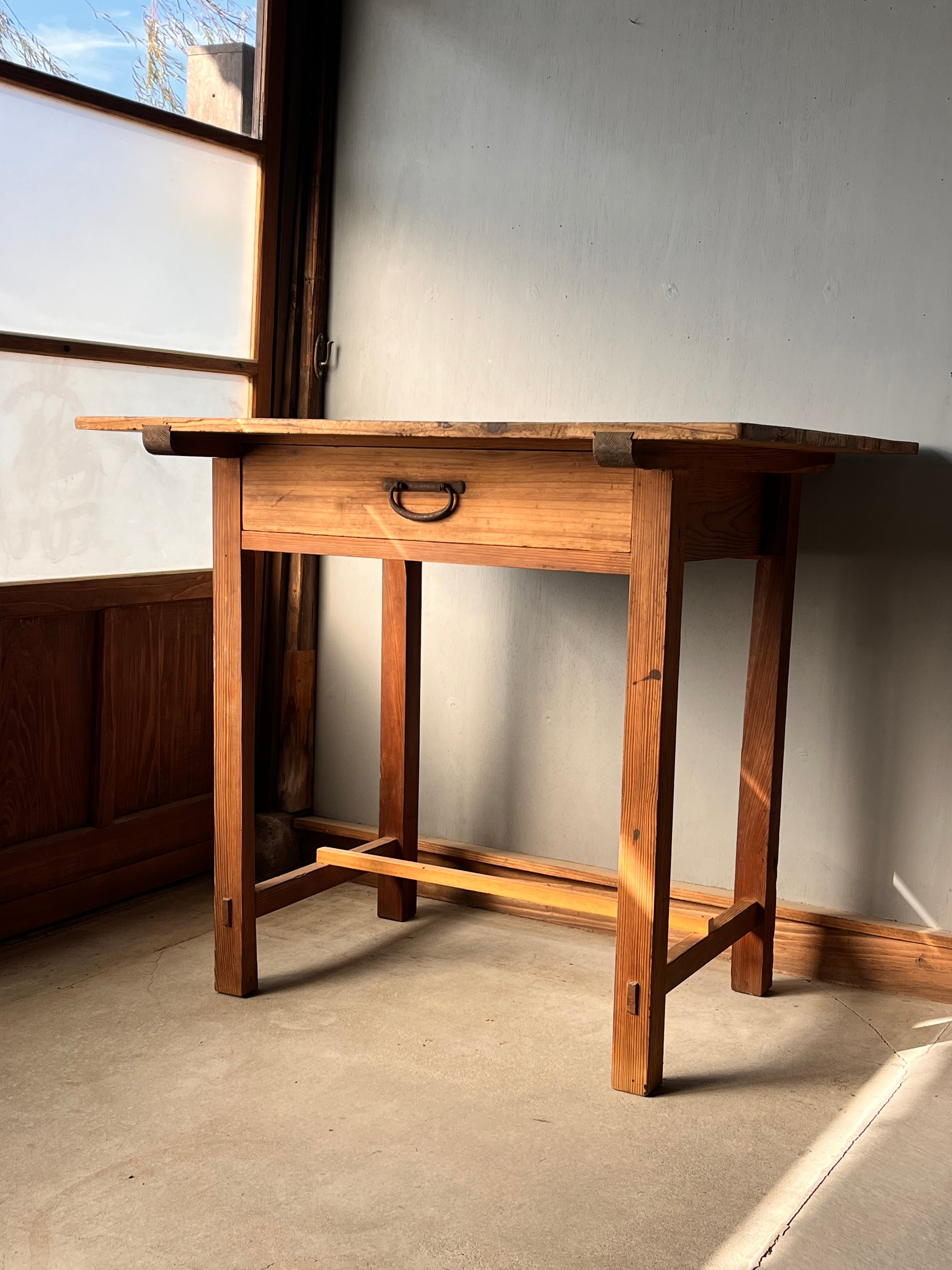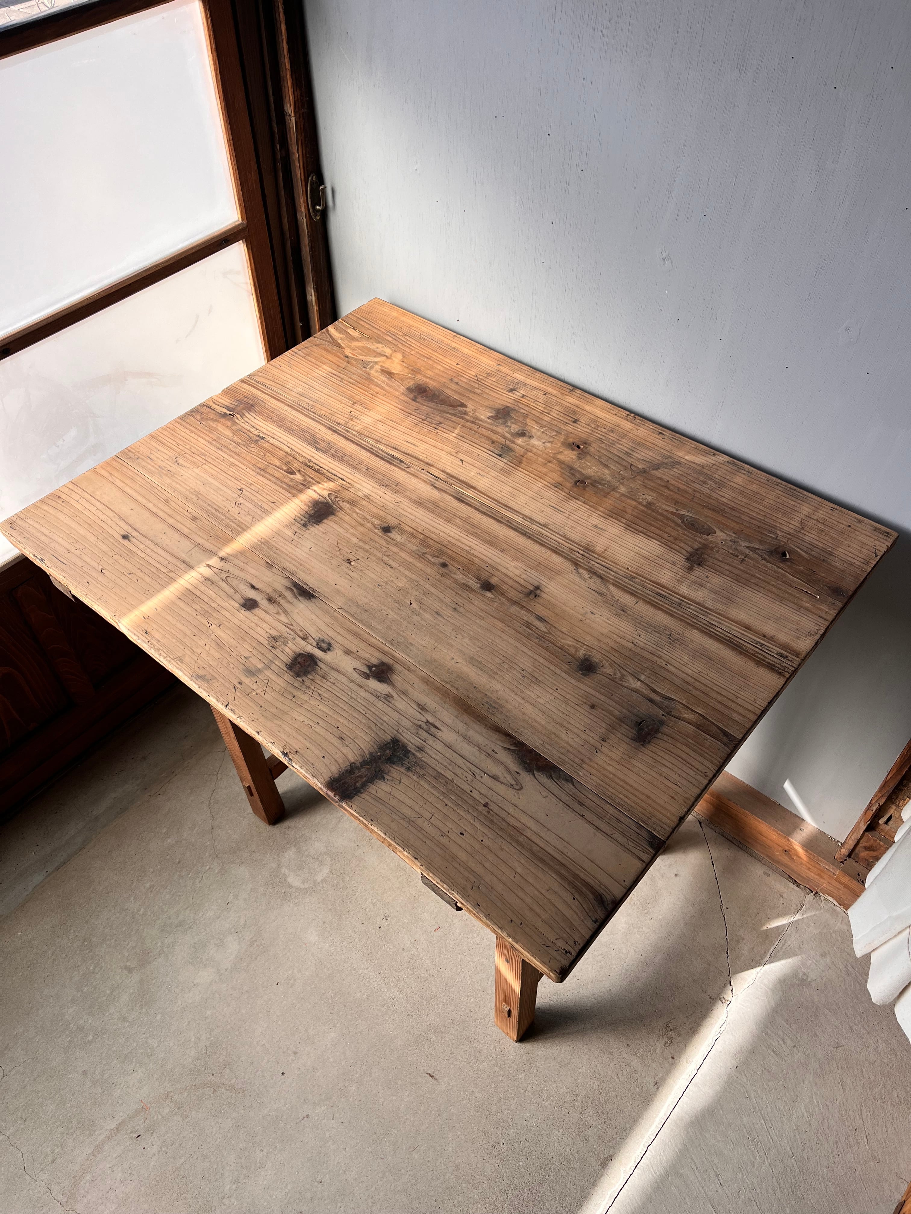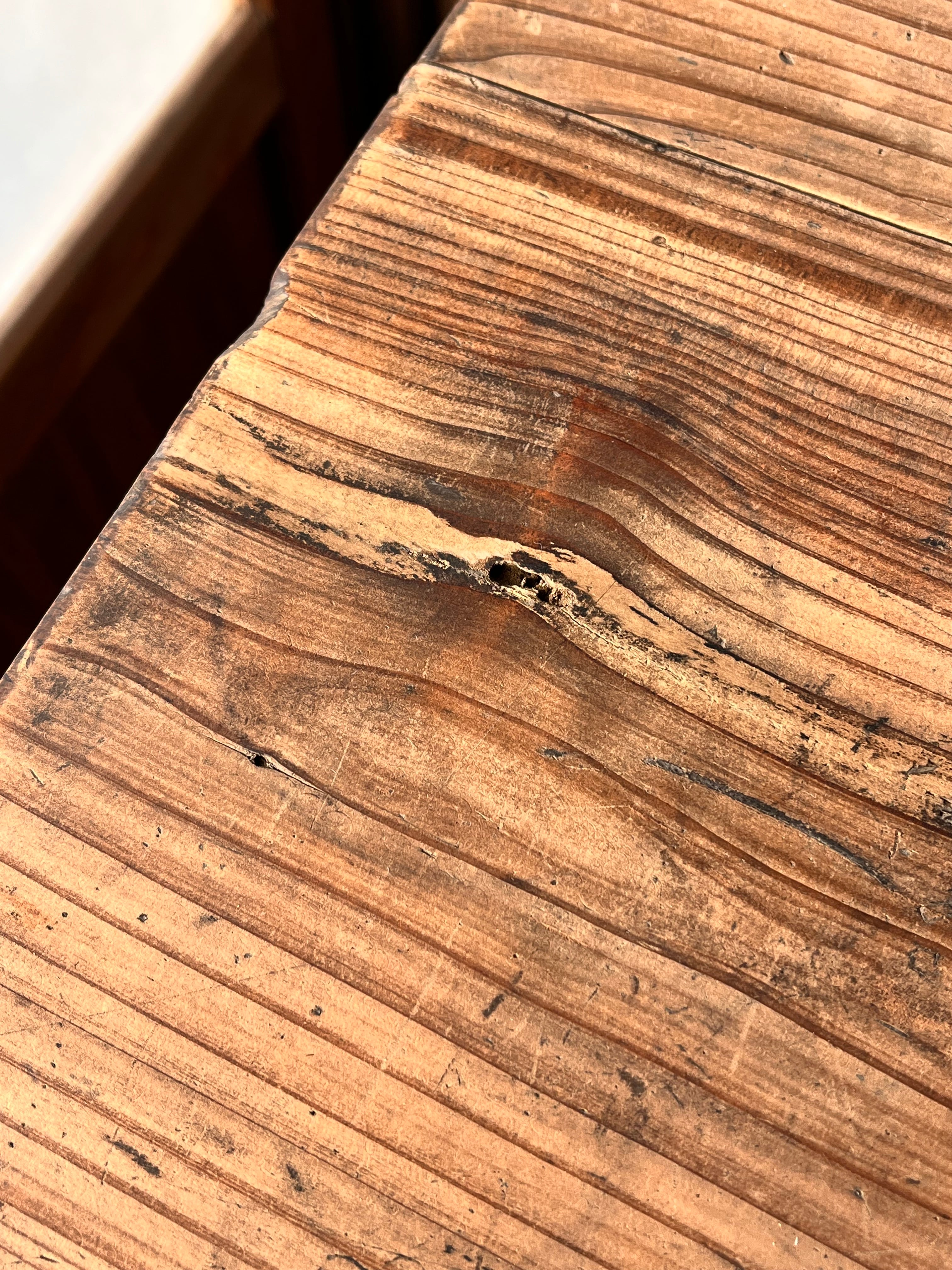 天板は薄く、華奢なのでお皿などを置く店舗什器におすすめです。虫食い多々ありますので、お安くしております。