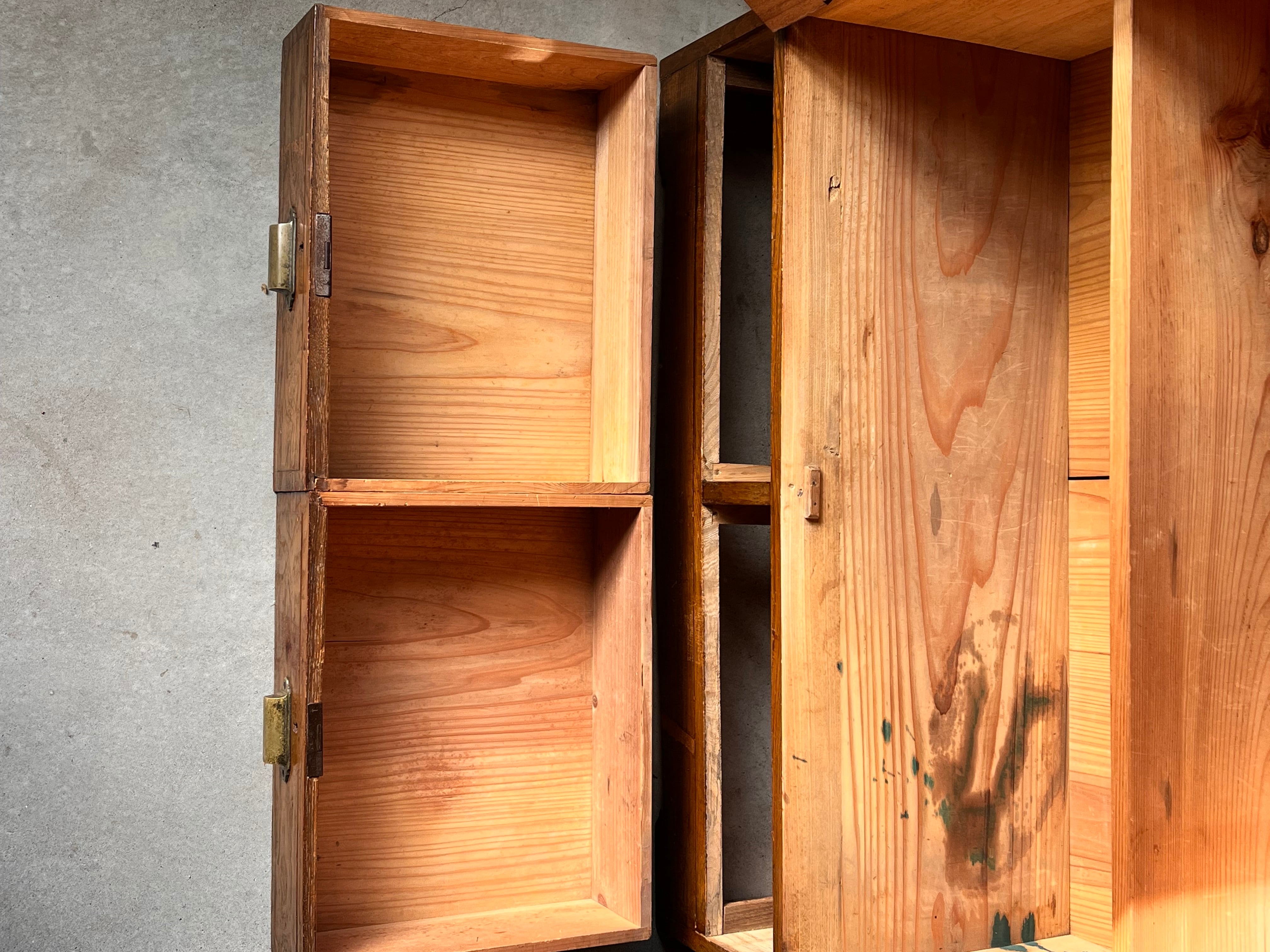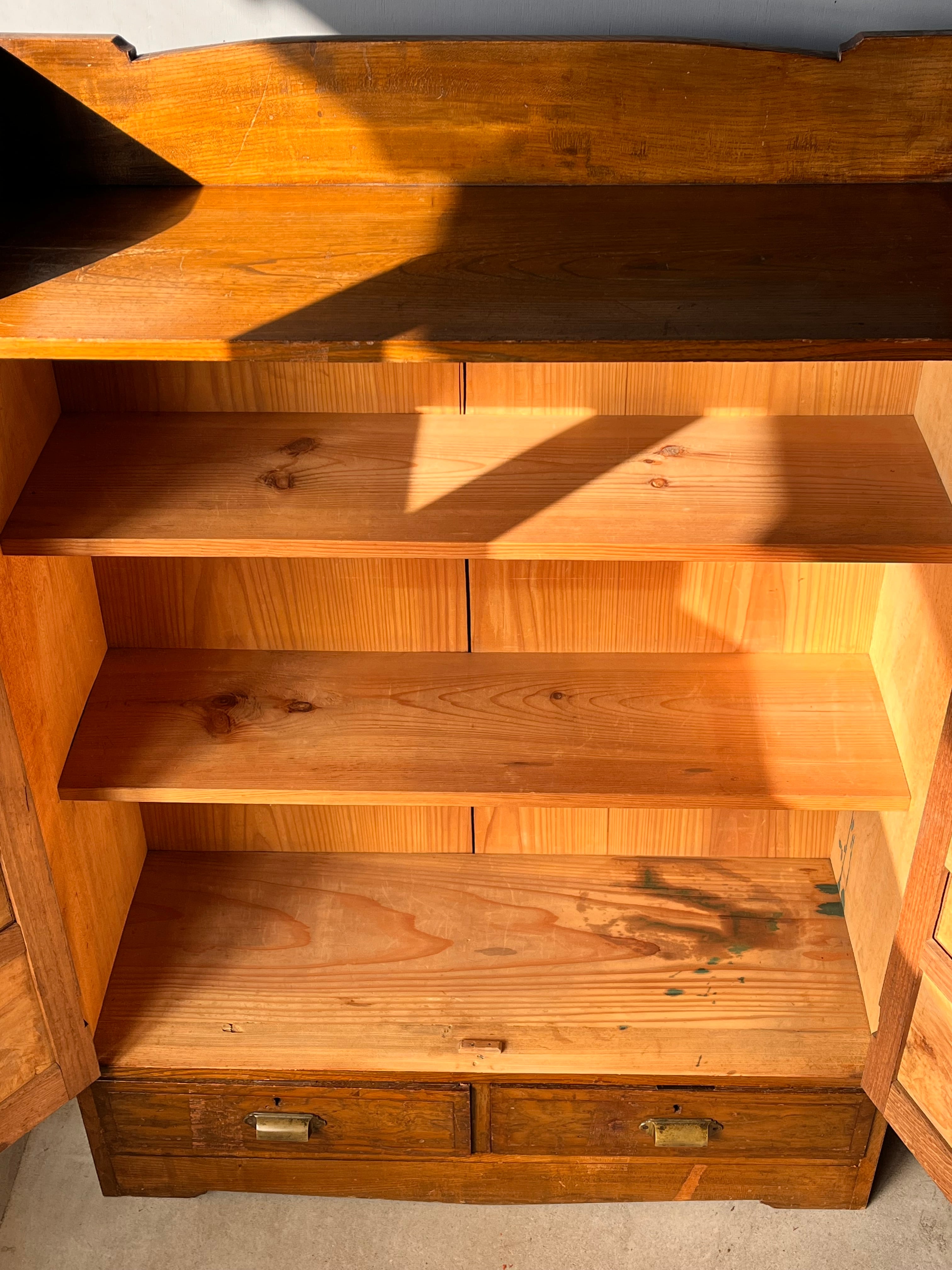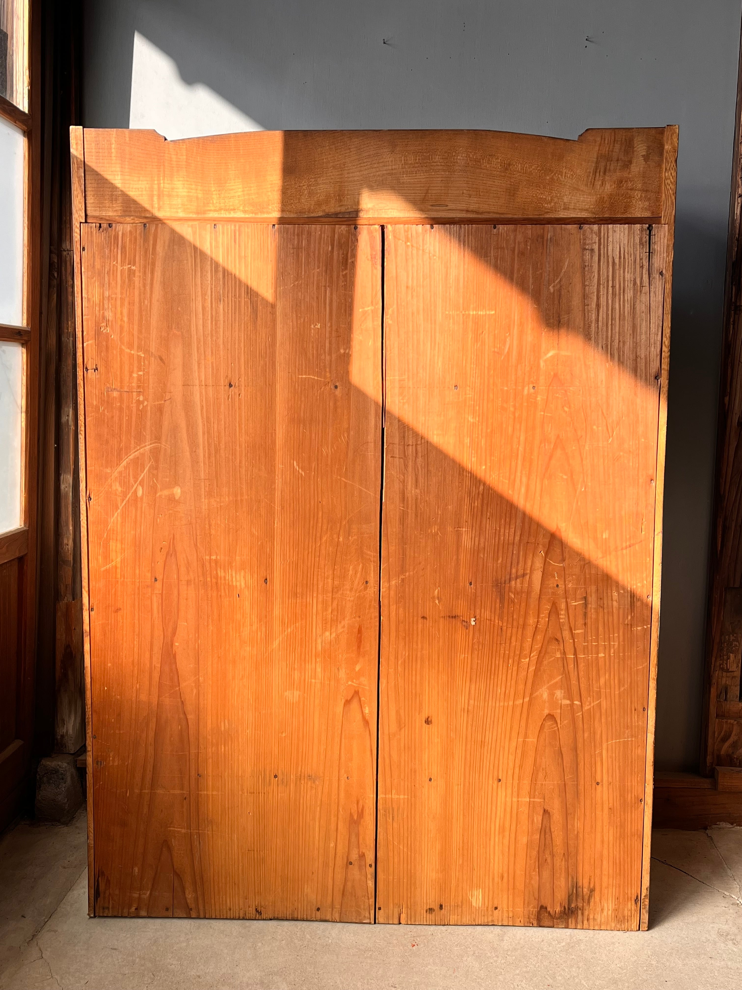 ダイヤガラスや蝶のような装飾を拵えた戸棚。