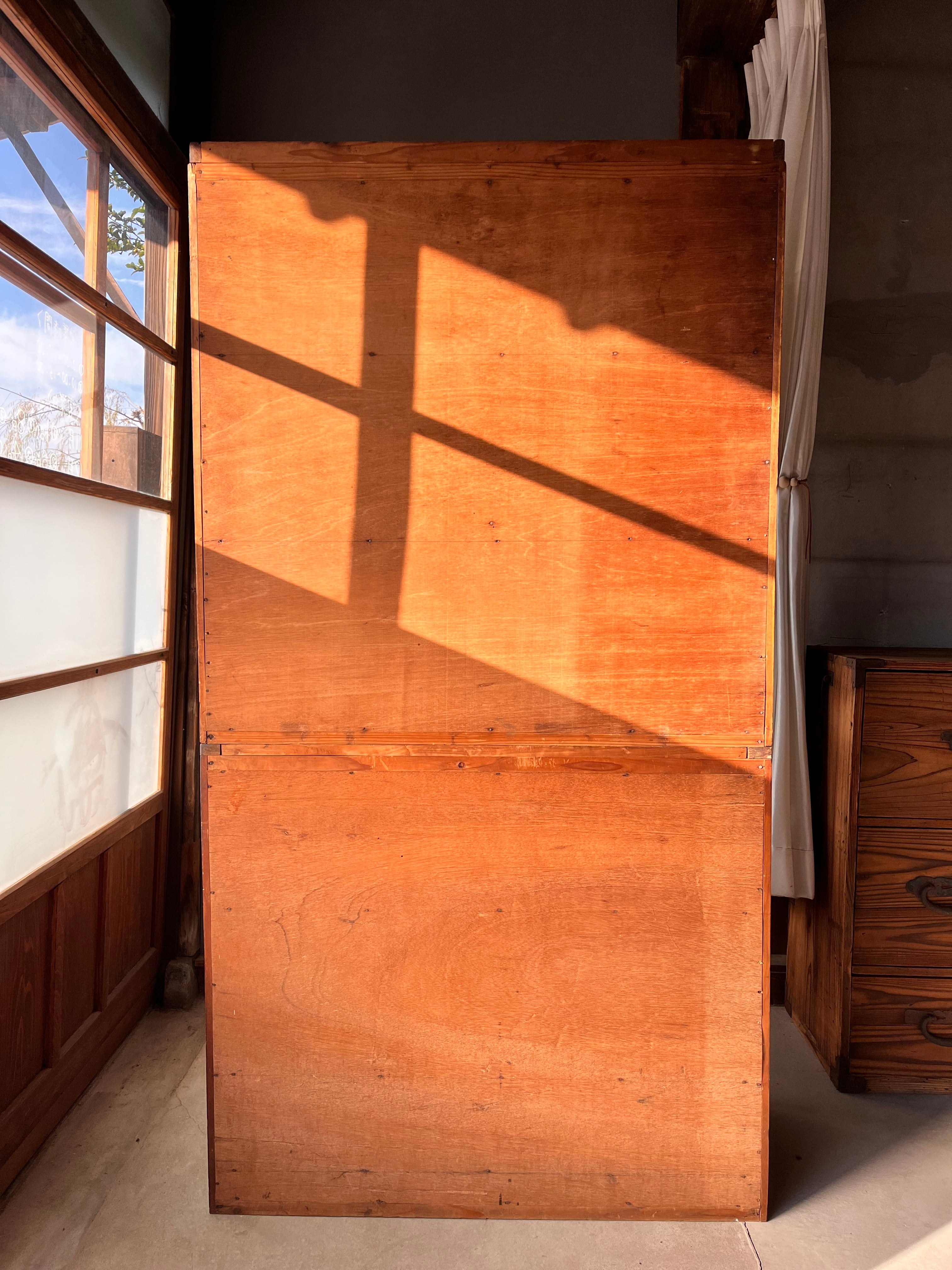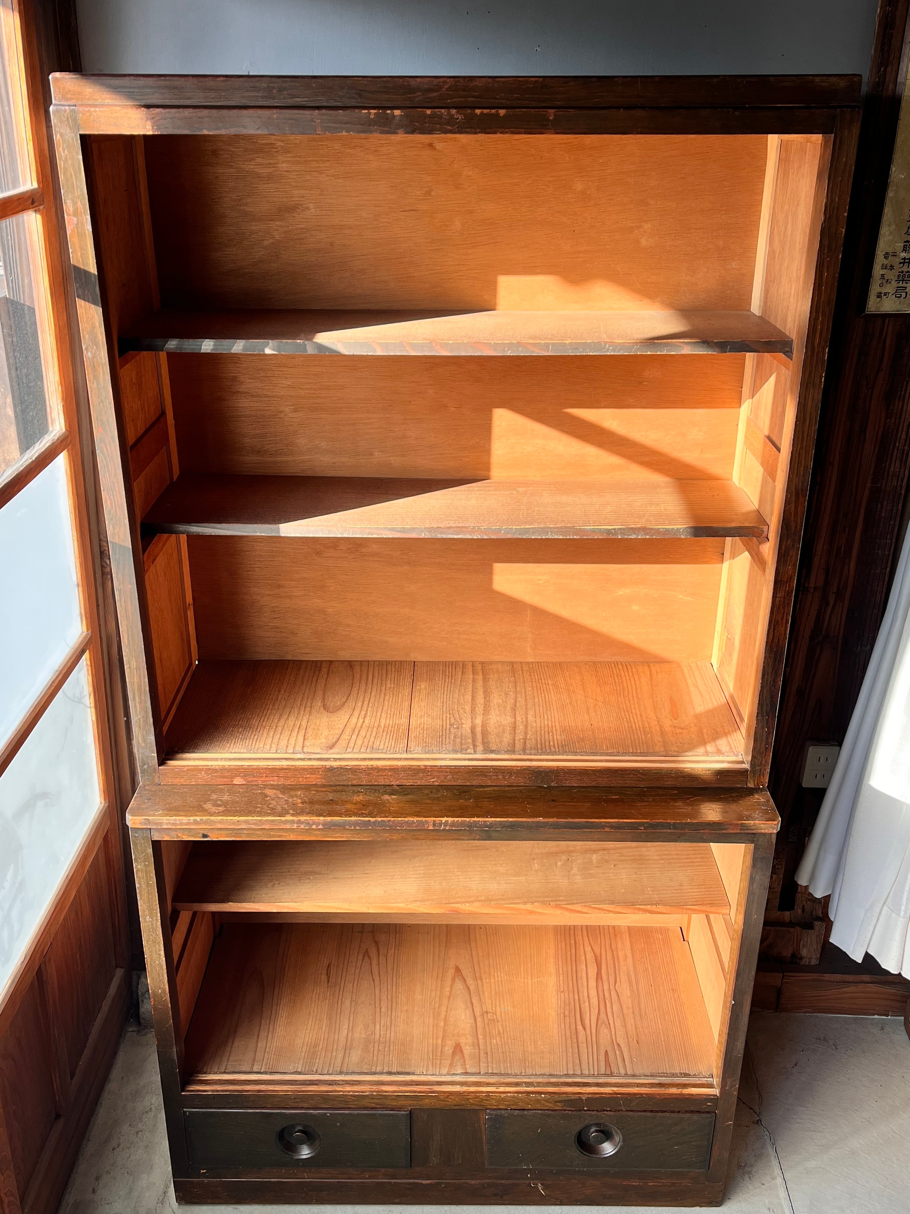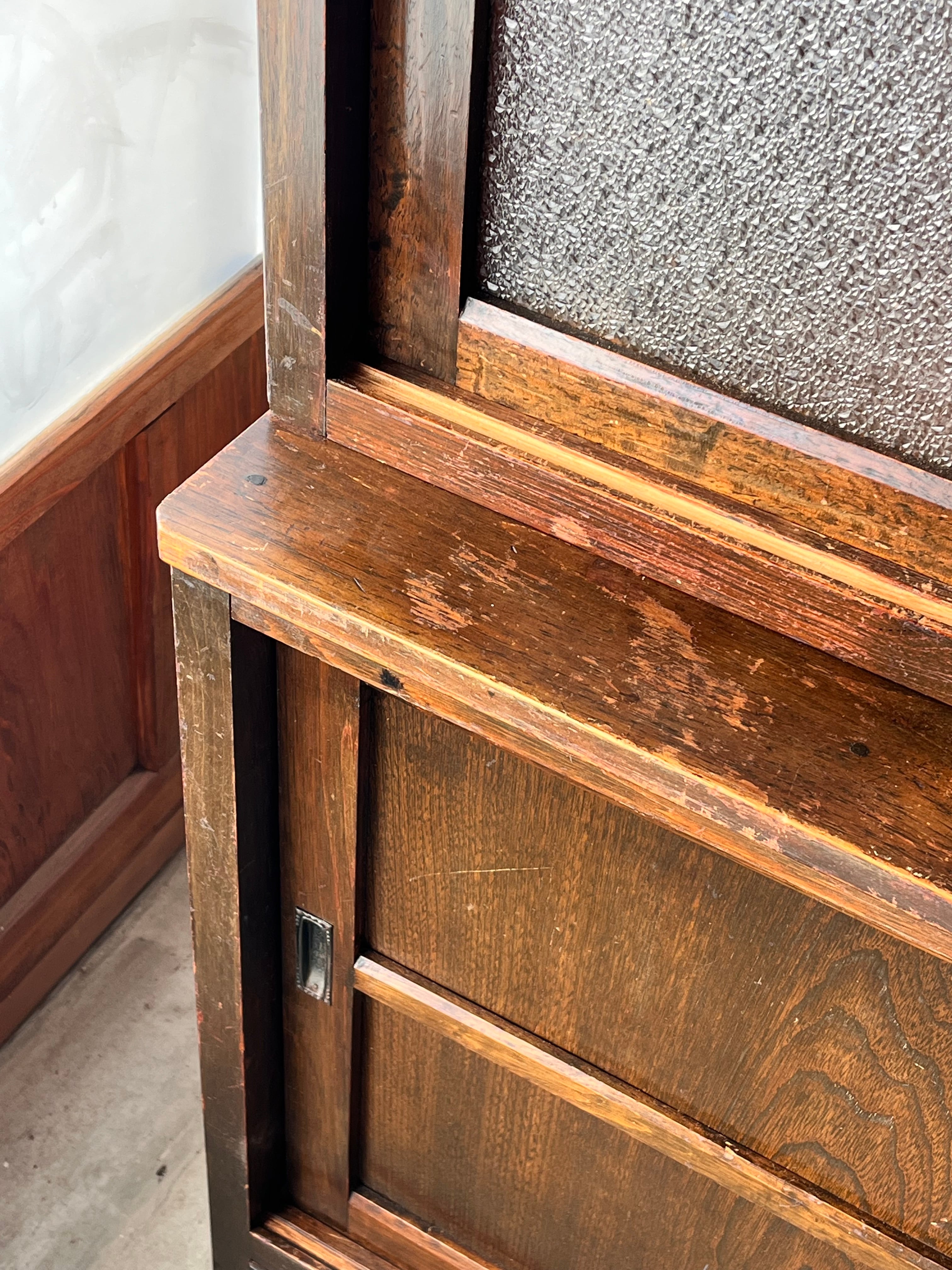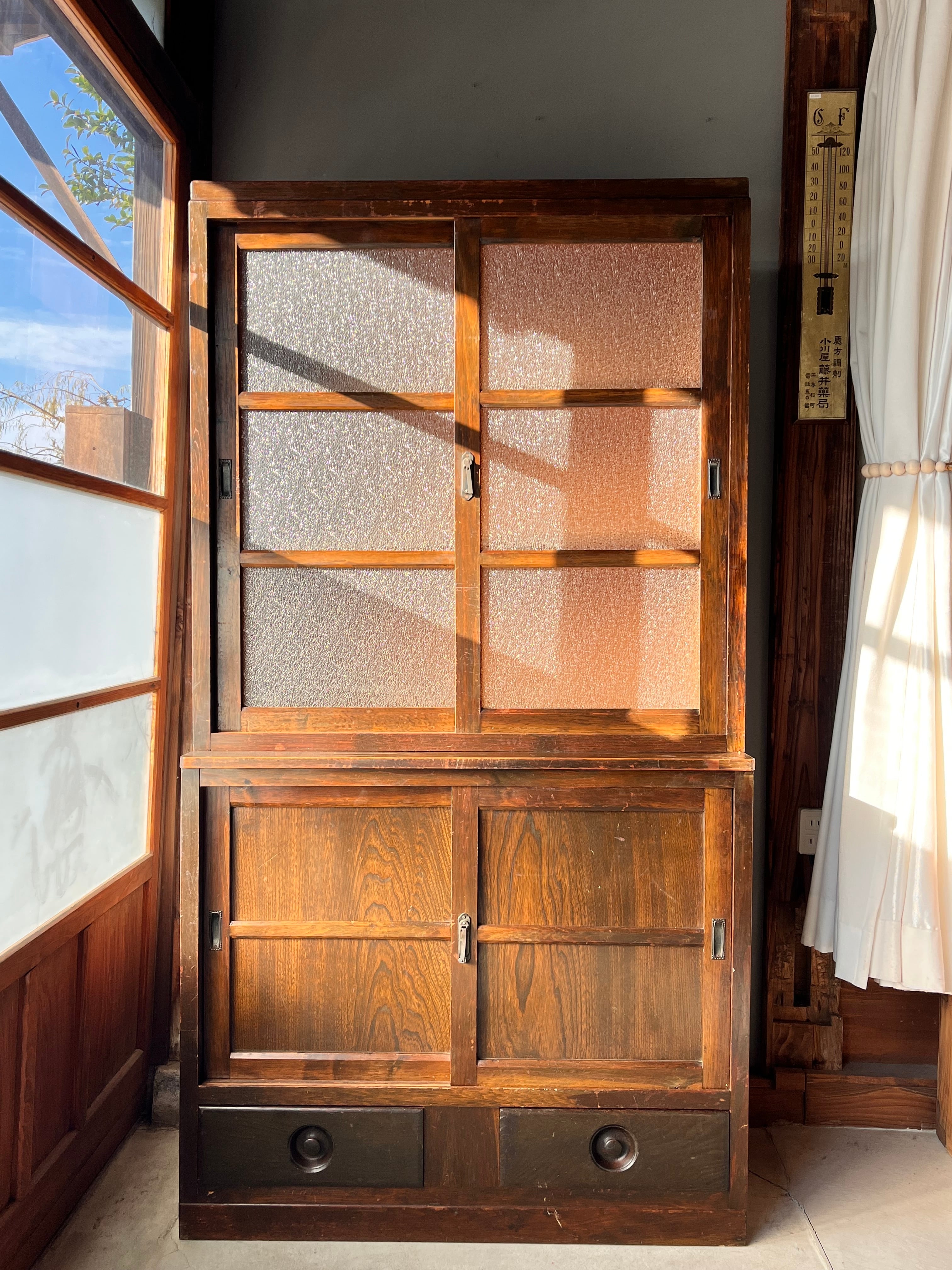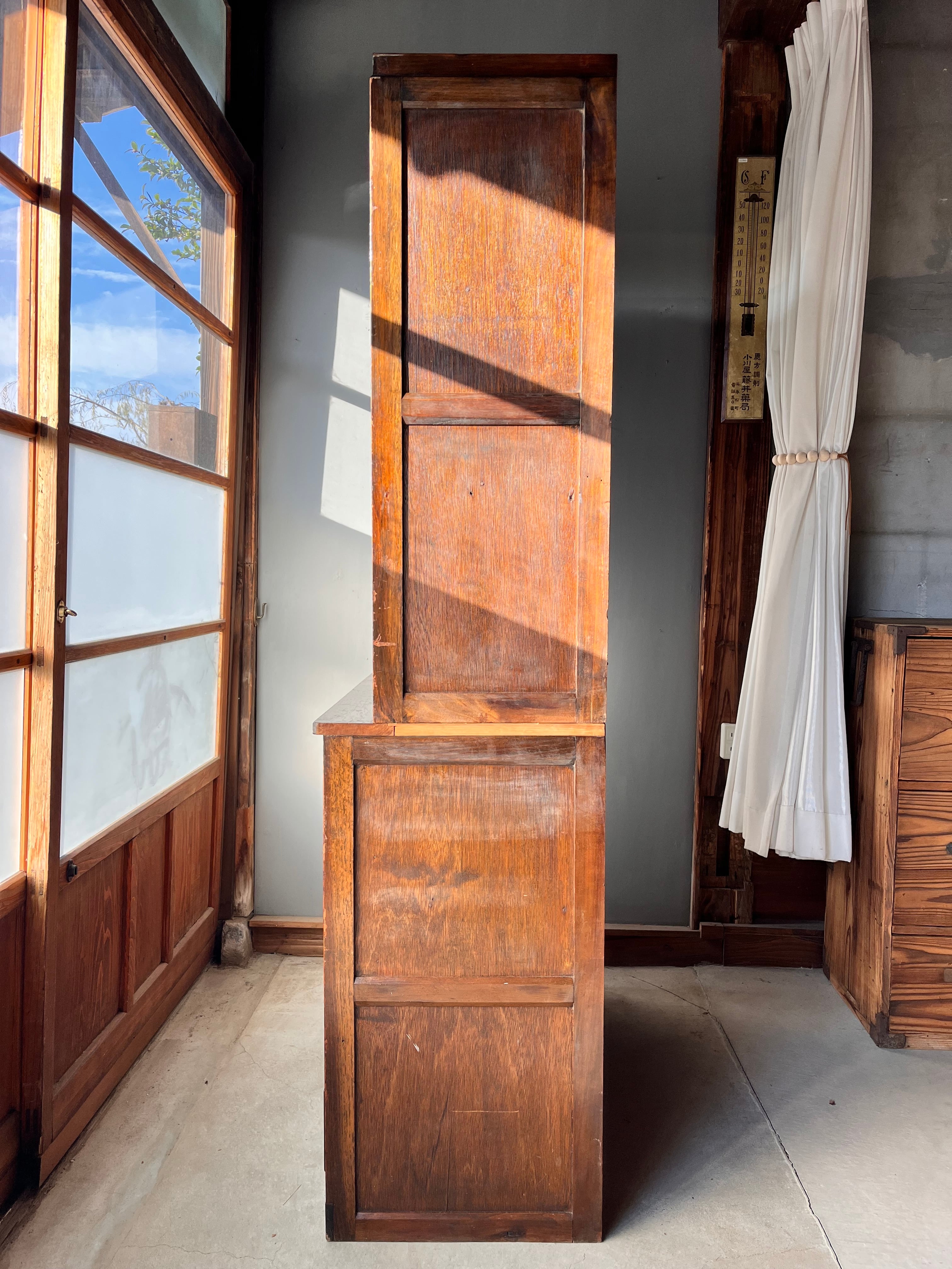 昭和レトロがお好きなお家に。使い込まれて味がある食器棚になっています。上下で分けることができます。