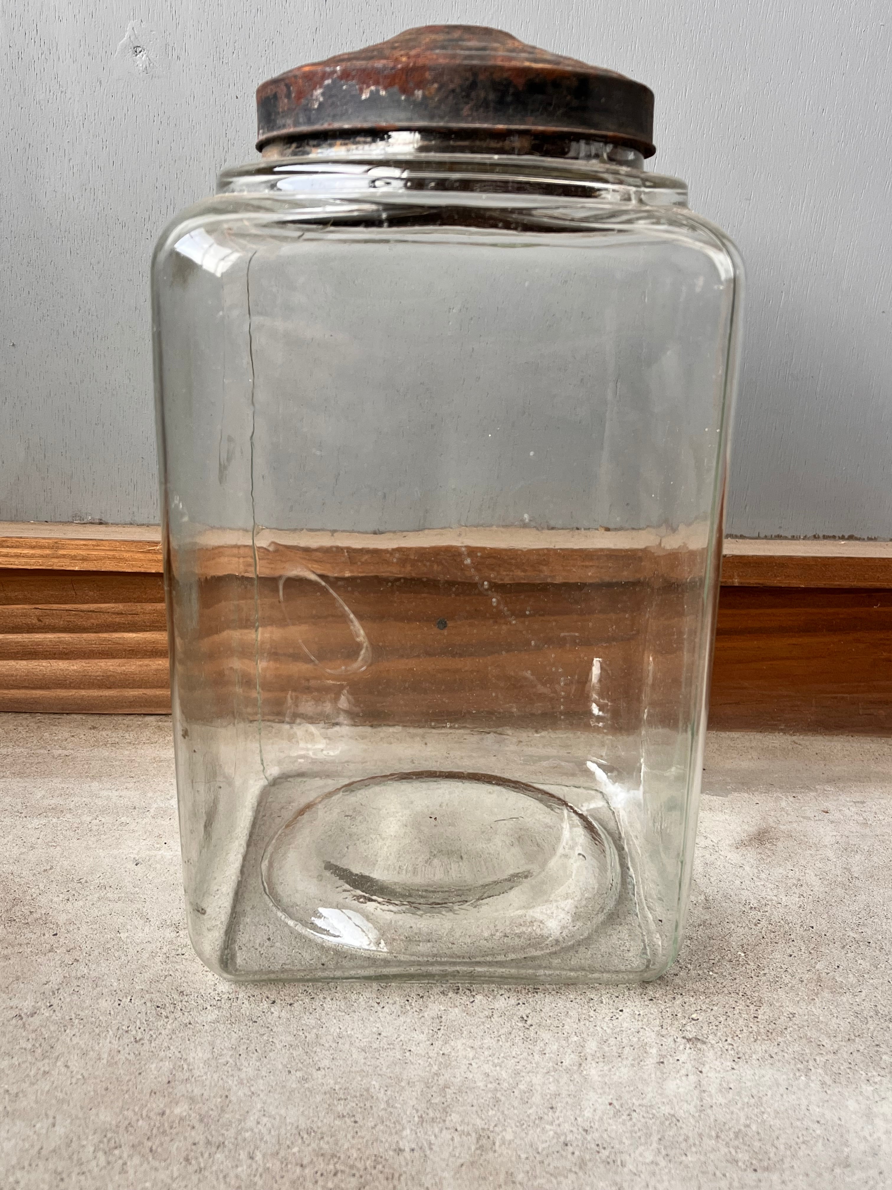 全体的に小さな気泡が入っていて、古さを感じる一品。駄菓子屋で使われていました。