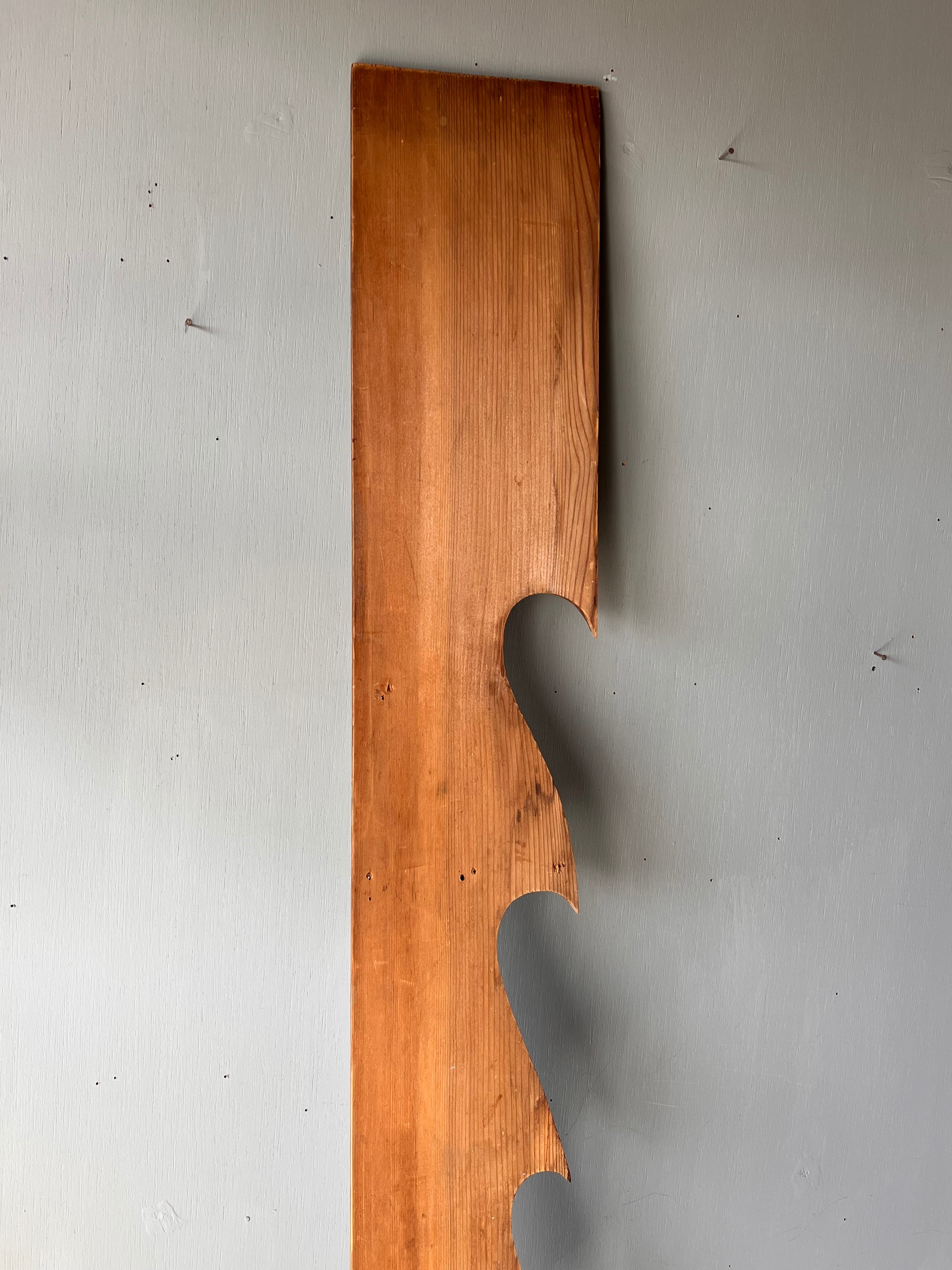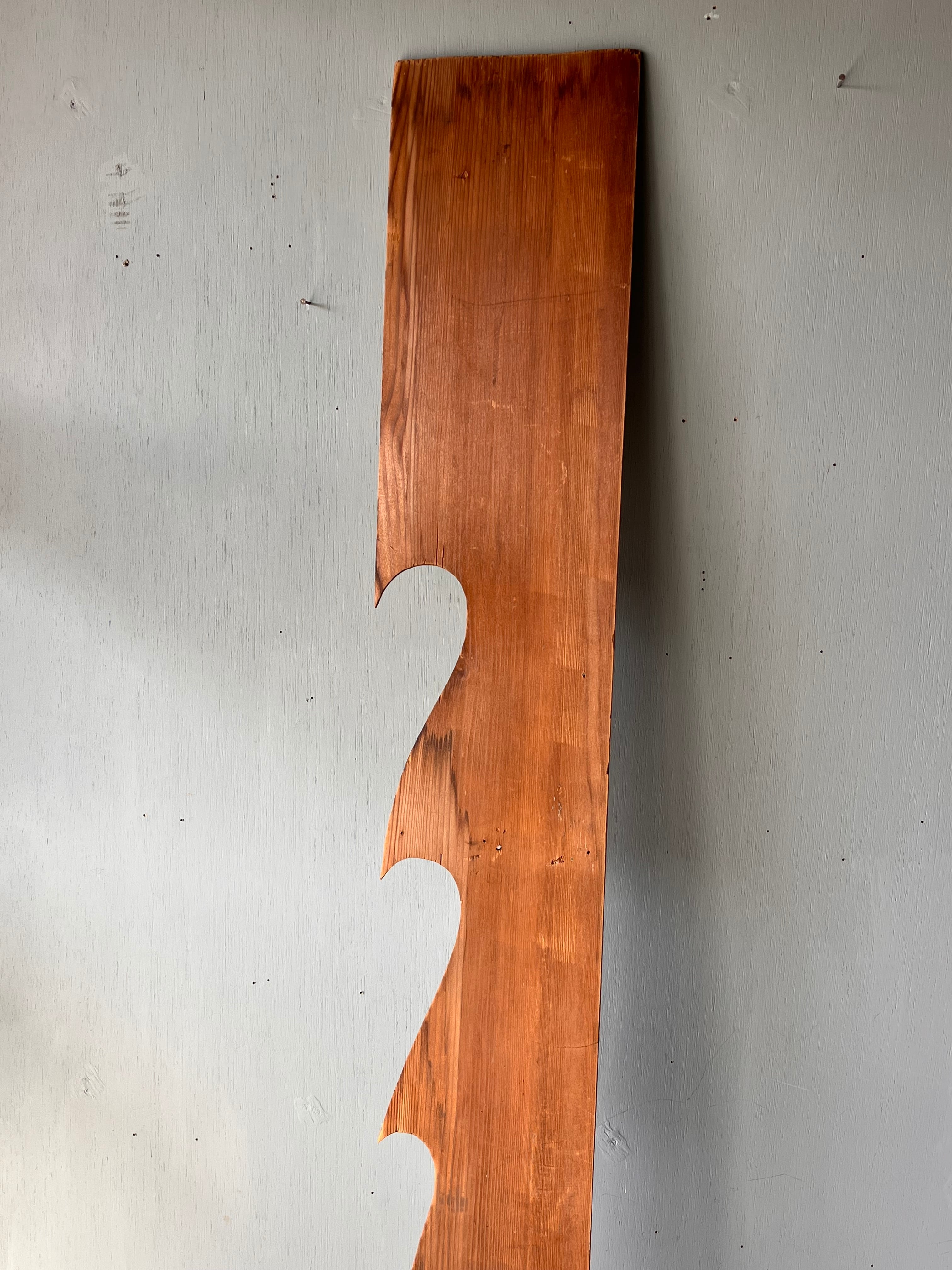 神棚を設置する棚板の上部に取り付ける雲の形を模した木製の装飾。神棚の上に天しかないという意味を持っていて神聖な飾り。波にも見える。