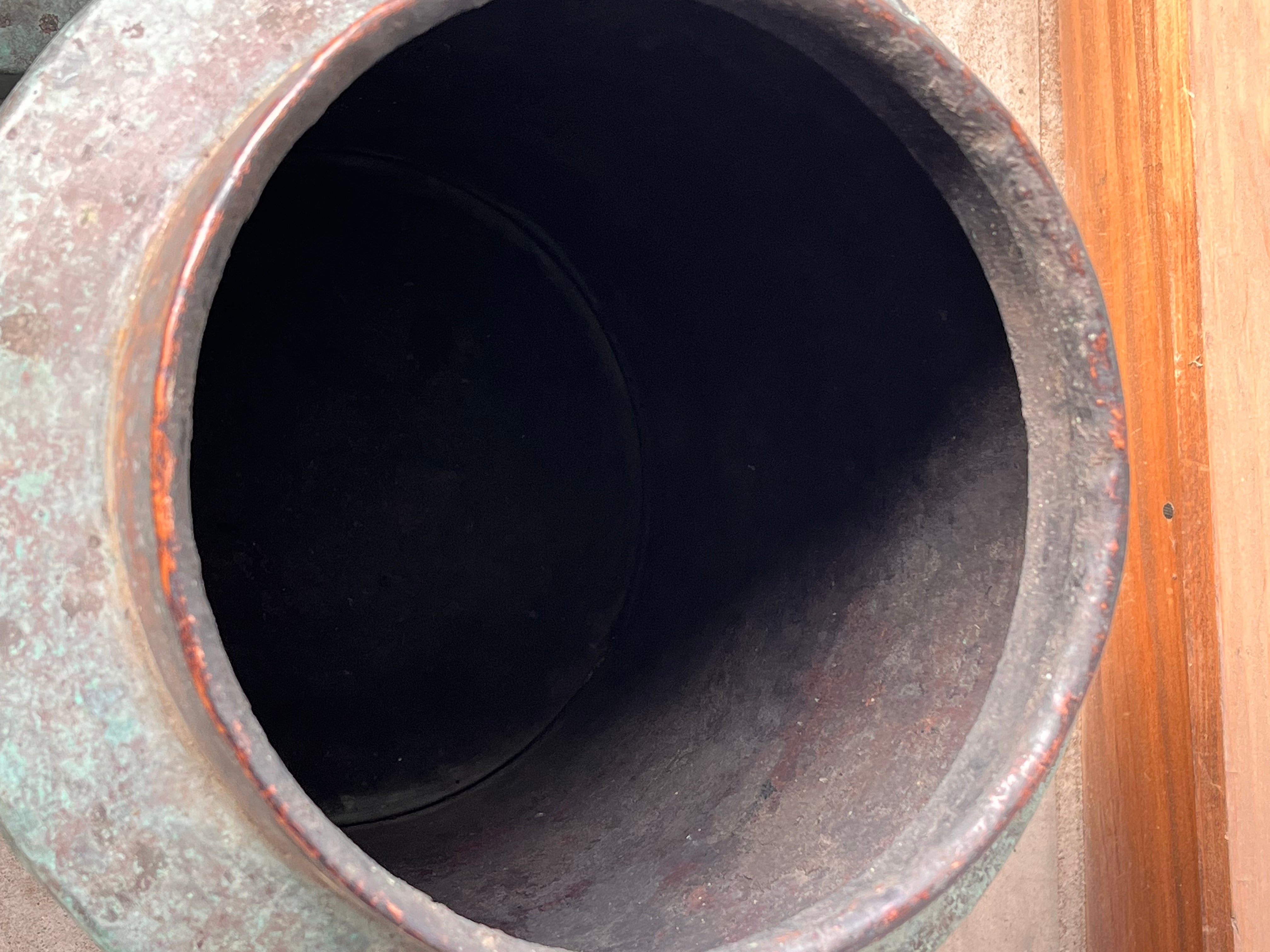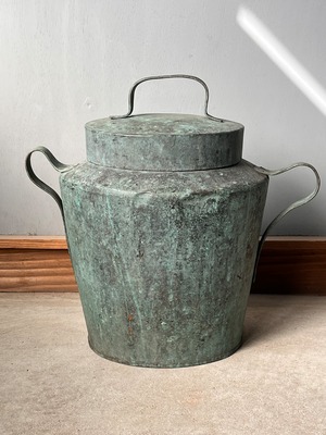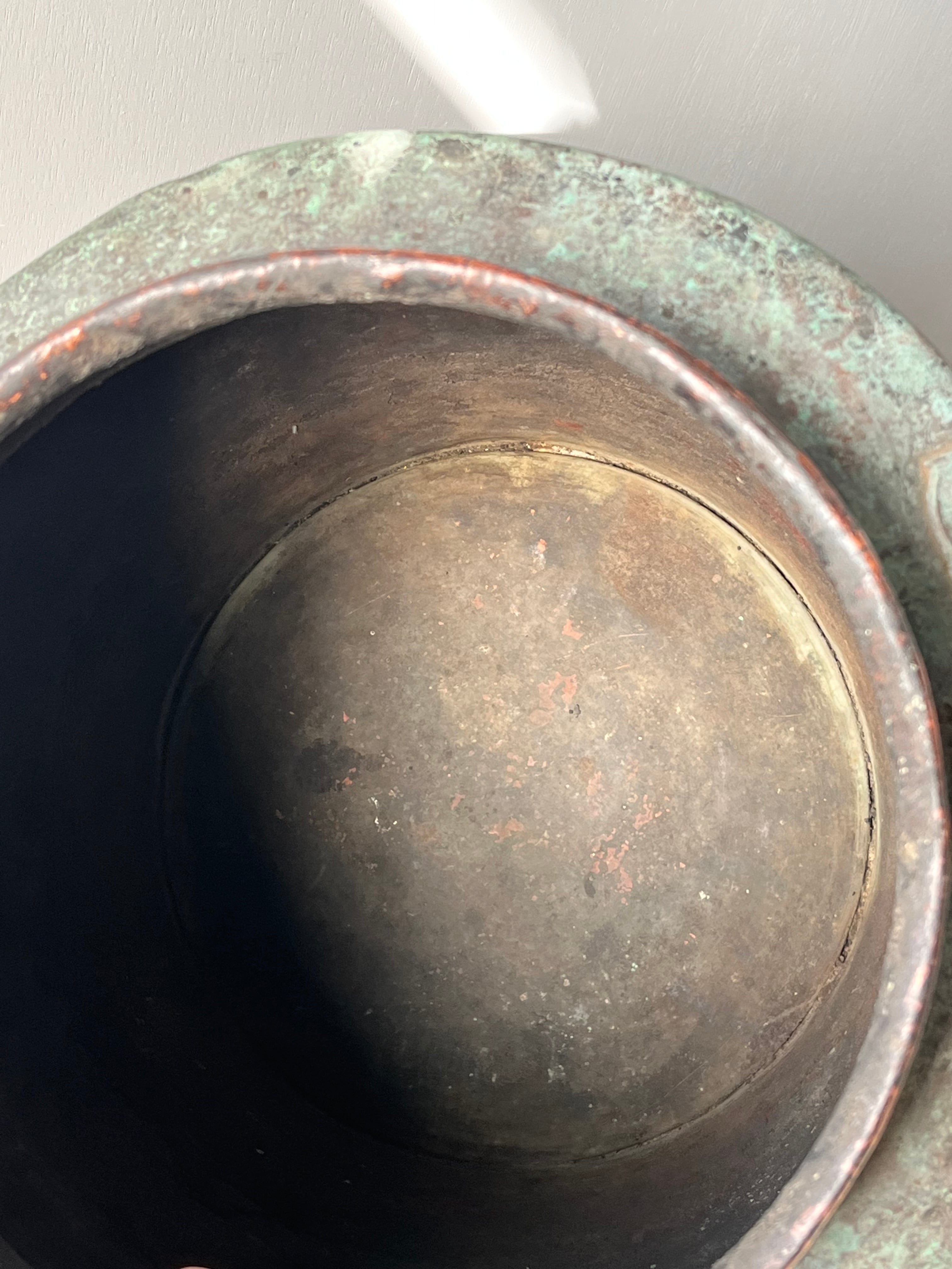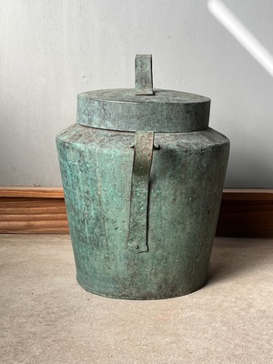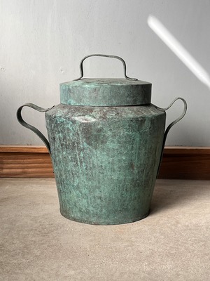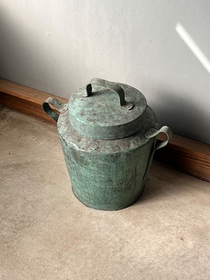 緑青が激しく、アートのように変色した炭壺。