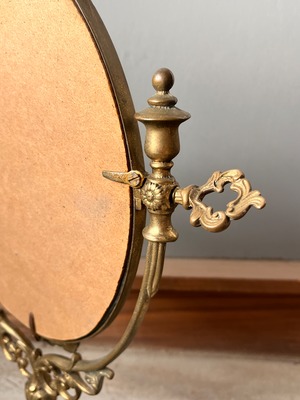 アクセサリー屋さんで重宝しそうな卓上ミラー。ミラーの角度が変えられるので、ネックレスやピアス、イヤリングを見る際に。