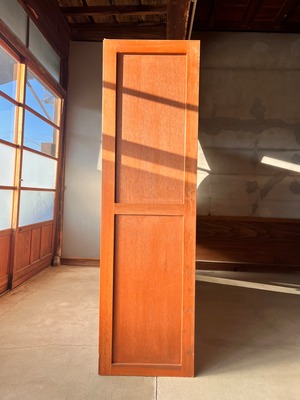 シンプルで大きいという点で店舗什器として重宝しそうなガラスケース。棚板も取り外し可能です。在庫4点ございますが、どれもさほど状態に差がないため、こちらで選ばせていただきます。