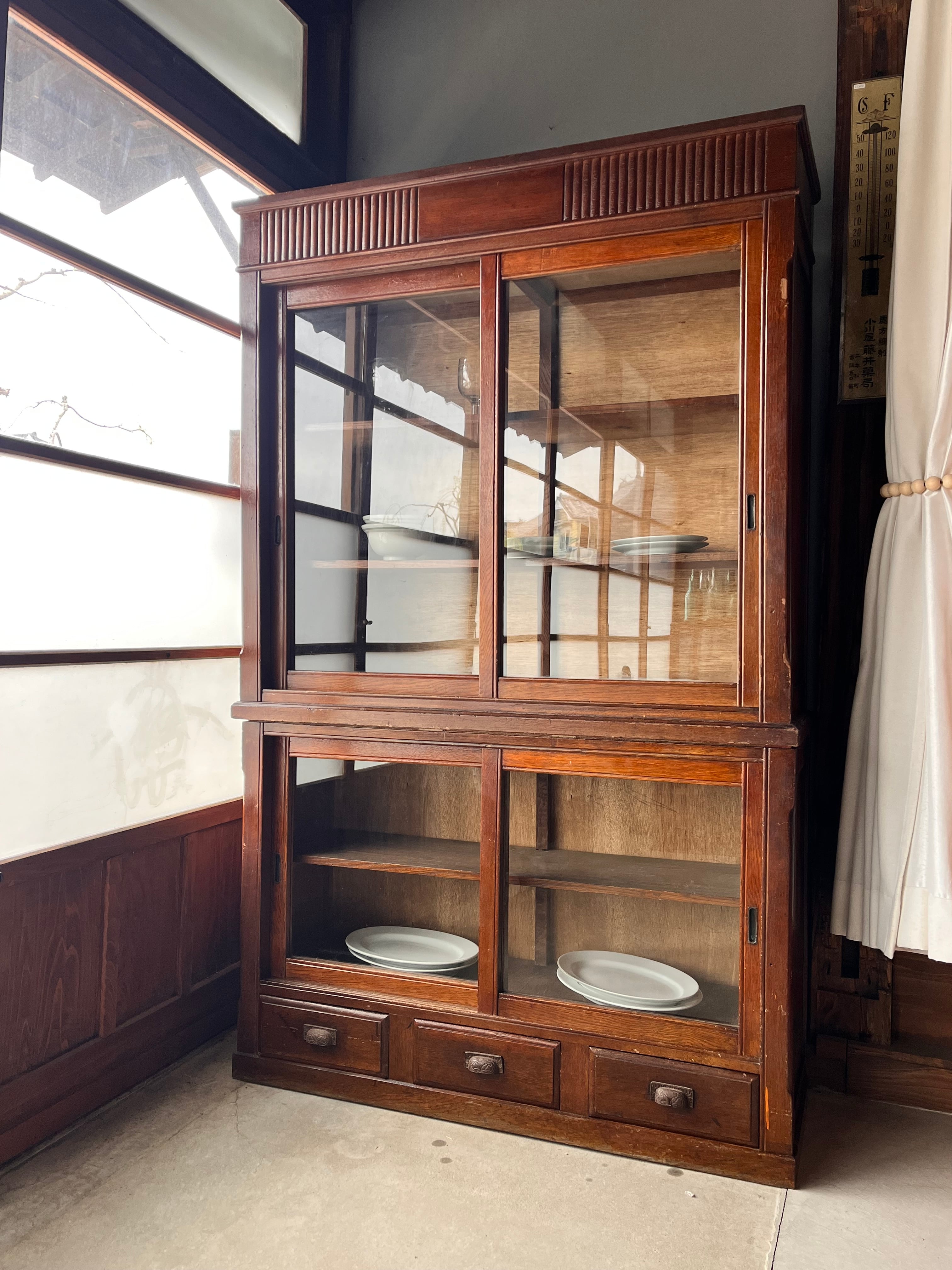 立派な食器棚。楢材使用で重厚感もございます。